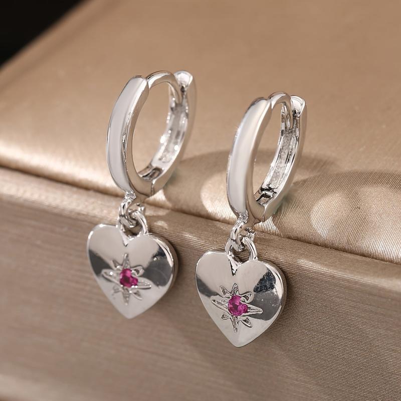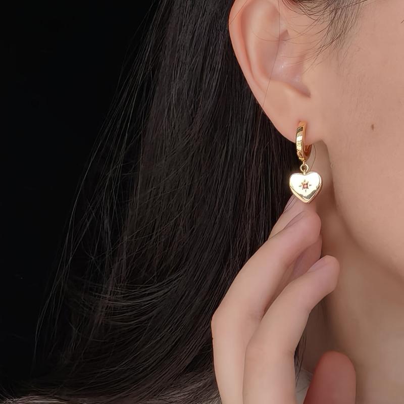 These elegant earrings feature a heart pendant design with sparkling cubic zirconia stones. Perfect for women who love vintage, sweet style jewelry. Give as a thoughtful gift for any occasion.