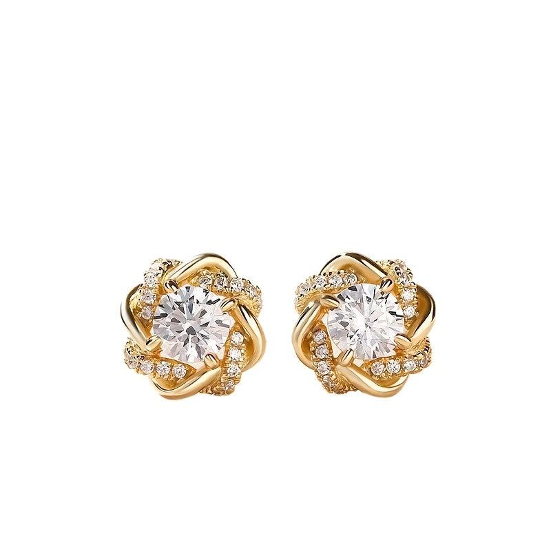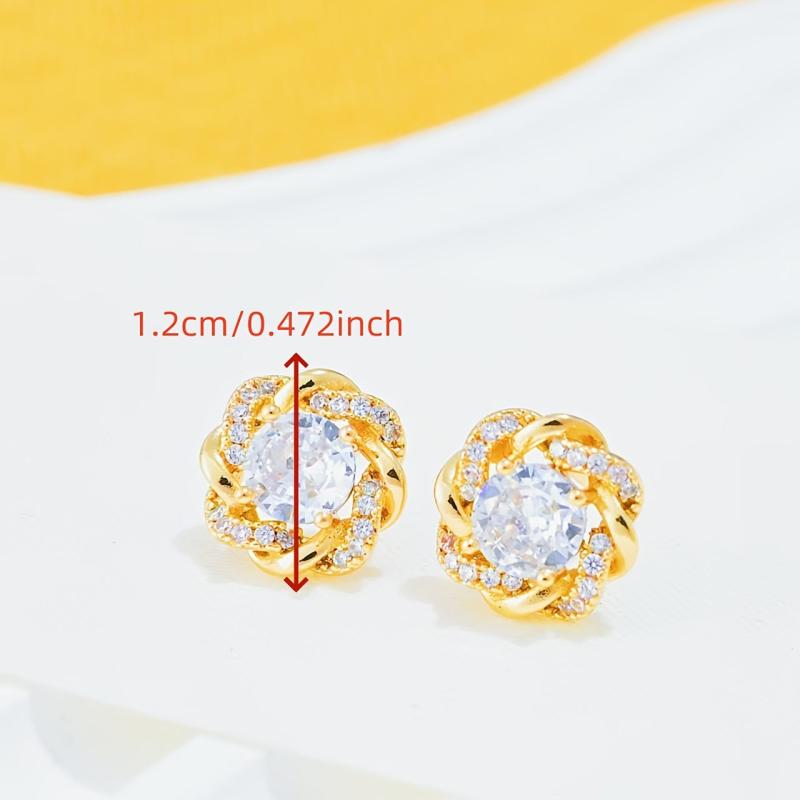 These round stud earrings are crafted with copper and inlaid with sparkling synthetic cubic zirconia stones, perfect for a glamorous European and American style look.