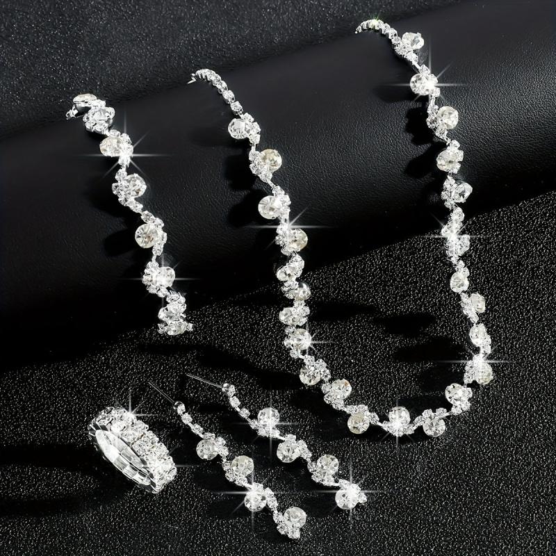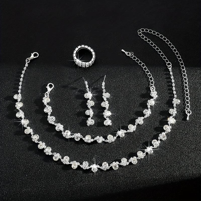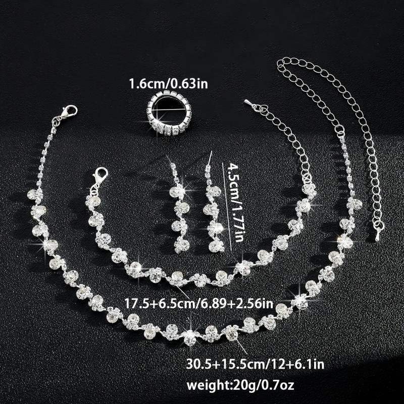 This four piece bridal accessory set includes a stylish copper jewelry set embellished with rhinestone footprints. Perfect for weddings and special occasions.