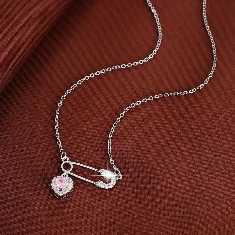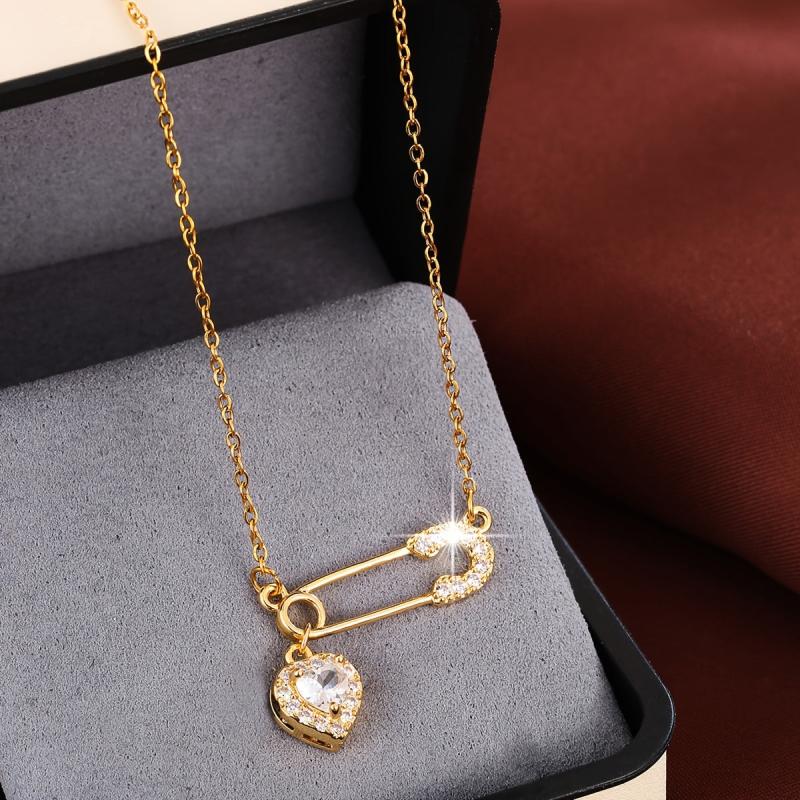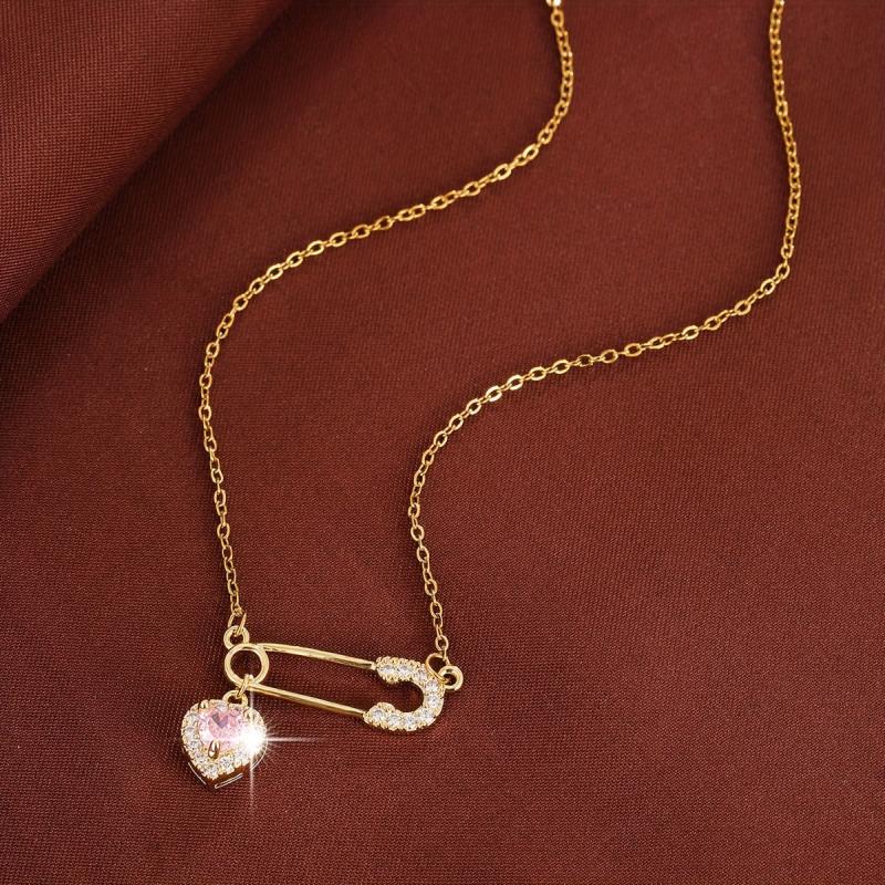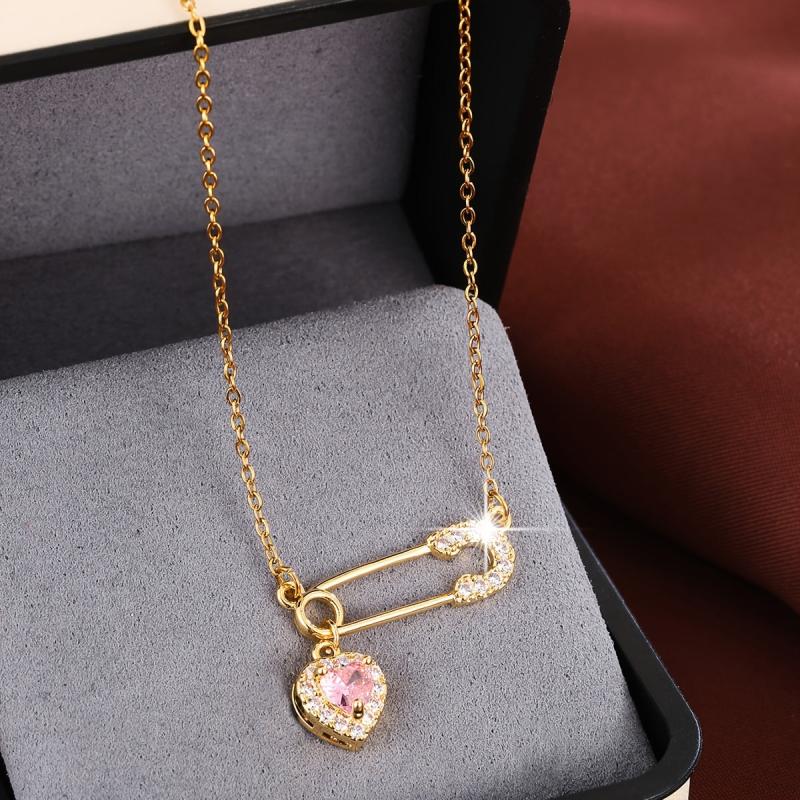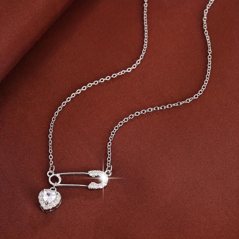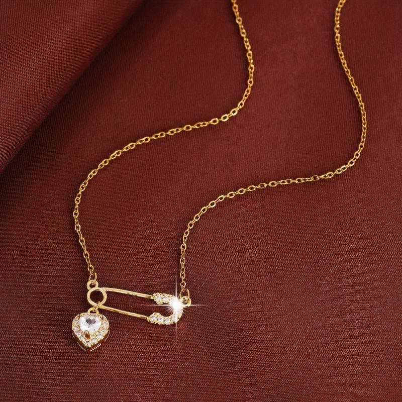 Elegant copper necklace featuring a heart-shaped pendant with sparkling cubic zirconia, ideal for daily wear or as a gift. This charming accessory adds a touch of glamour to any outfit.