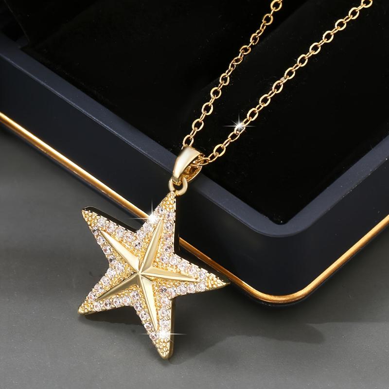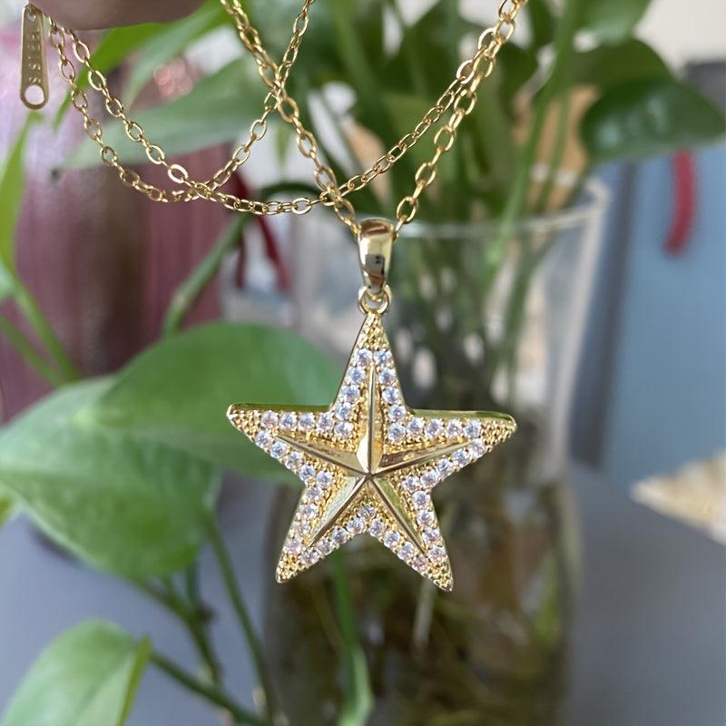 Elegant copper necklace featuring a star pendant with synthetic cubic zirconia charm. Perfect for birthdays, dates, vacations, or as a gift. The necklace has a stylish no plating design.