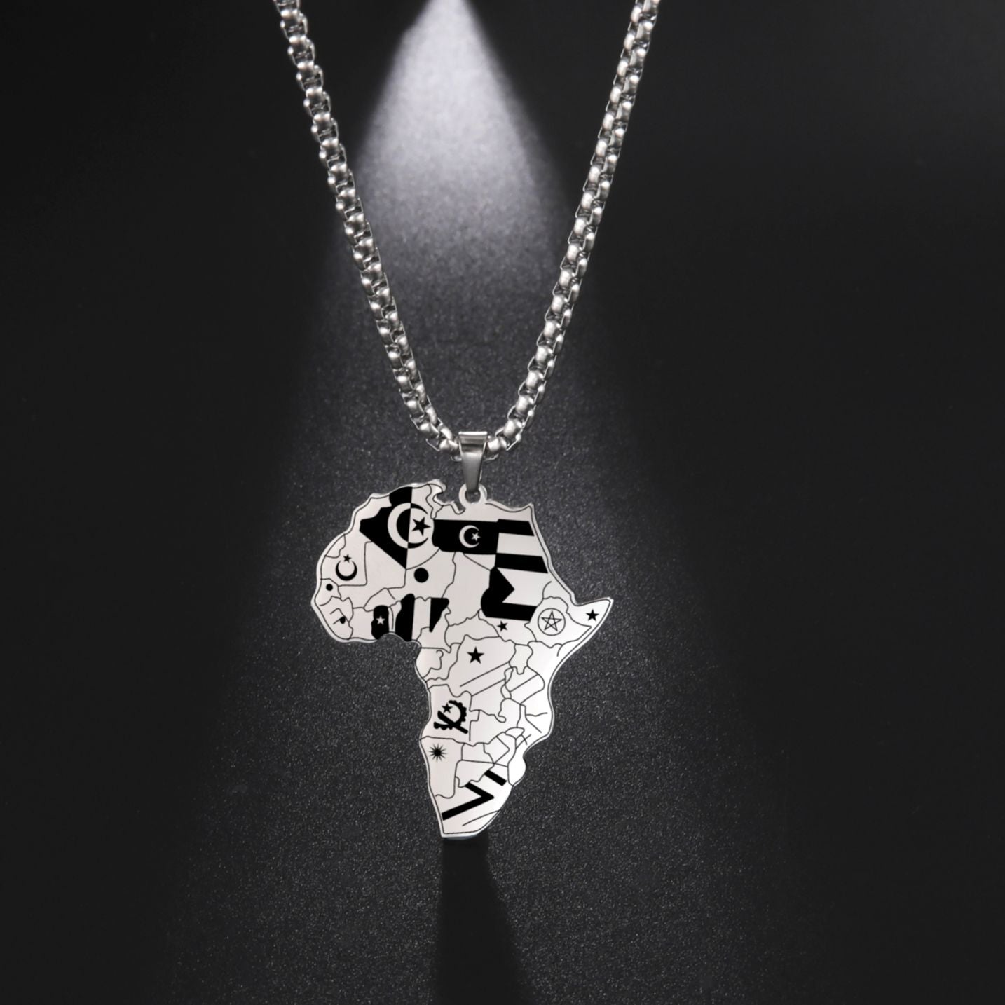 Show your national pride with this stainless steel necklace featuring countries flags map design. Perfect for men's casual or formal wear.