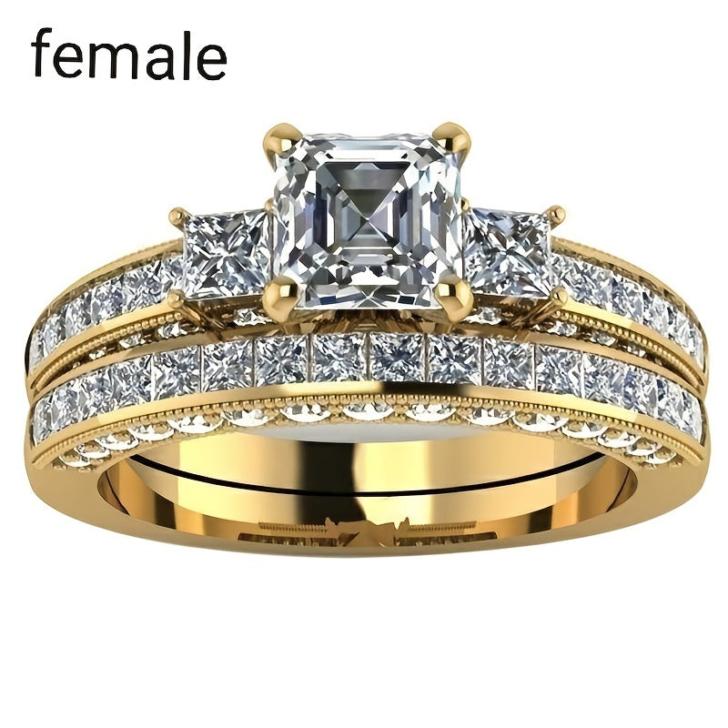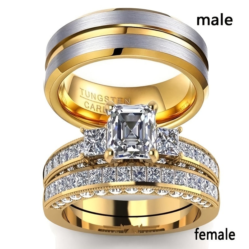 Elegant couple rings designed for men and women with zircon diamonds. Perfect for European and American styles.