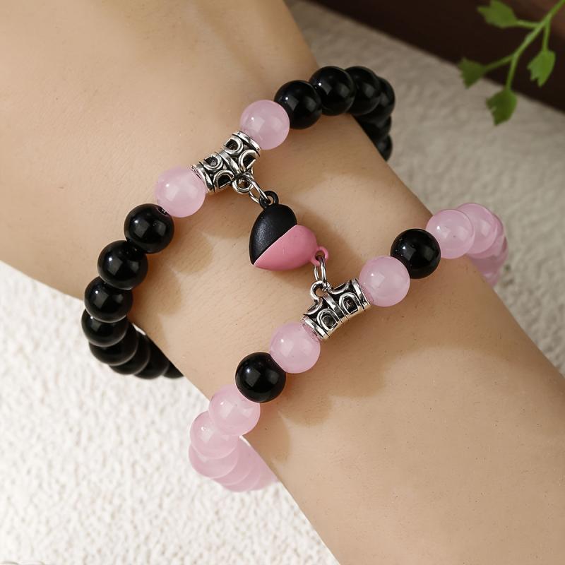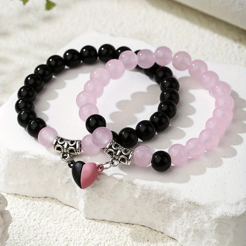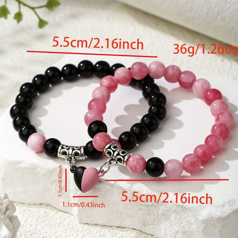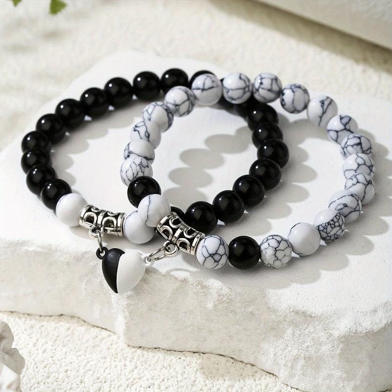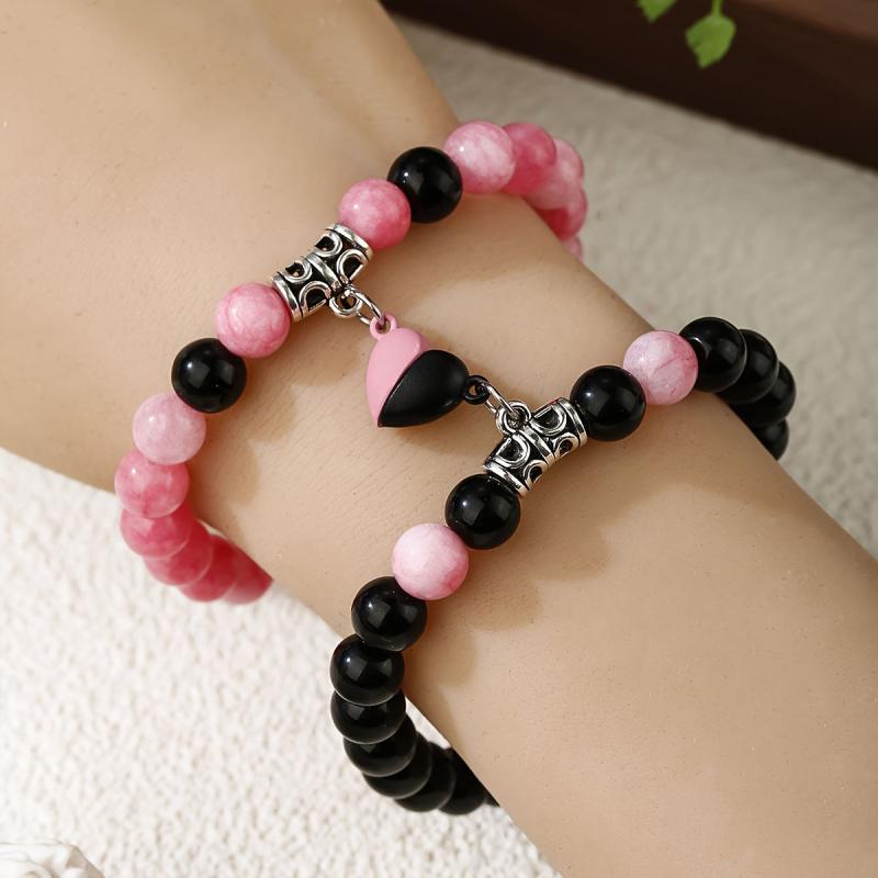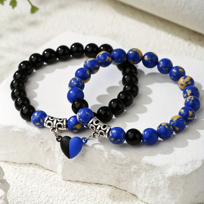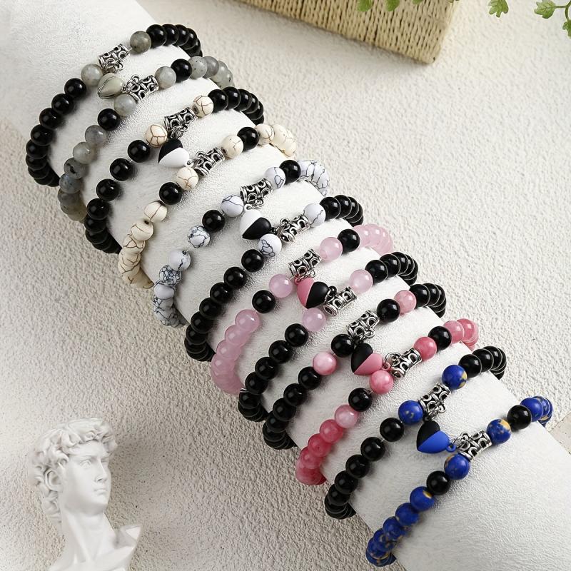 Express your love with these charming beaded bracelets featuring natural gemstones and a heart design. Perfect for couples seeking a retro bohemian style.