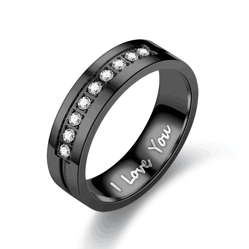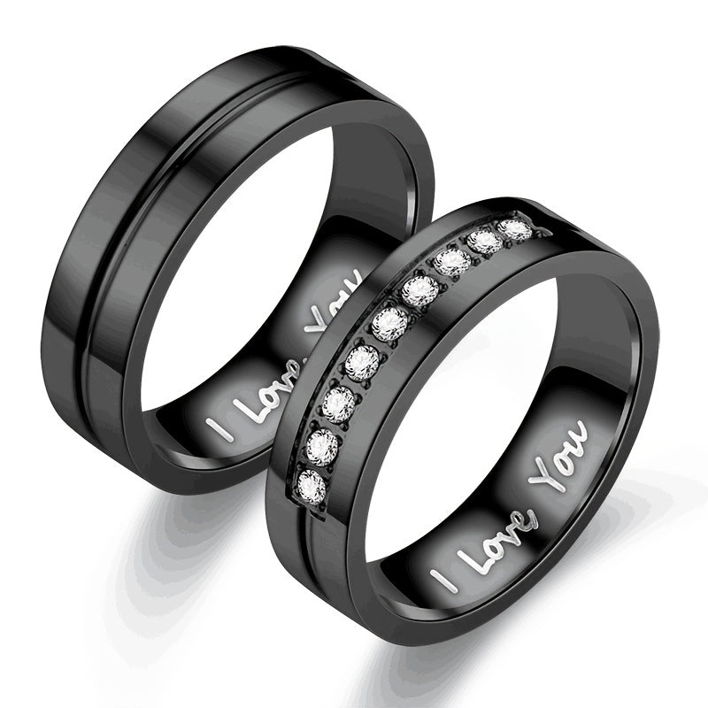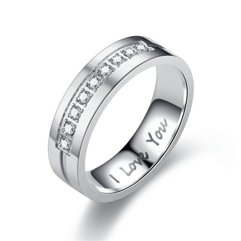 Show your love with these beautifully designed stainless steel rings featuring seven rhinestones. Perfect for couples.