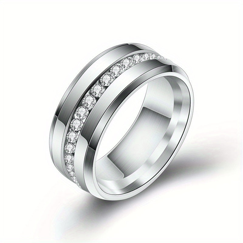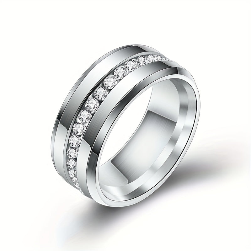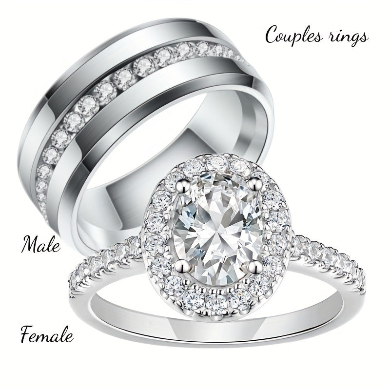 This beautiful stainless steel ring features an oval cut zircon stone, perfect for engagement proposals for both men and women.
