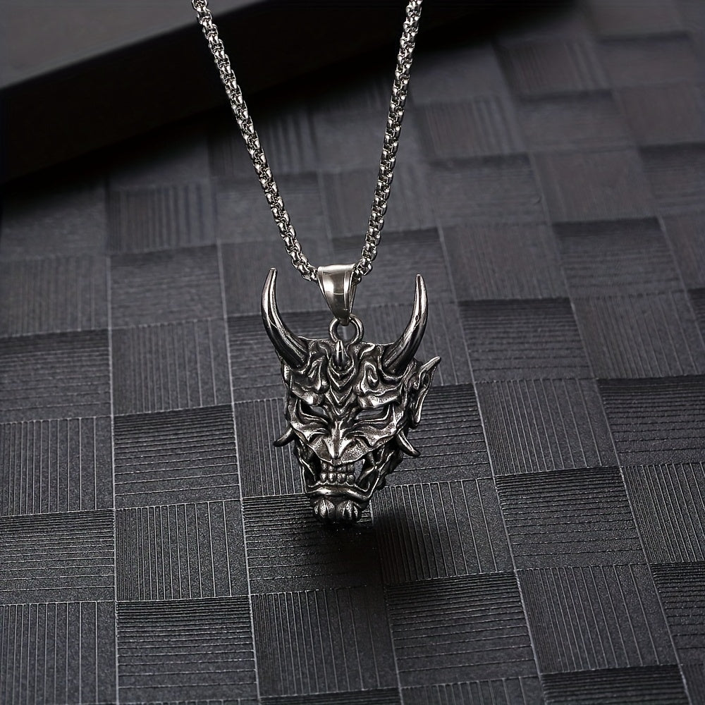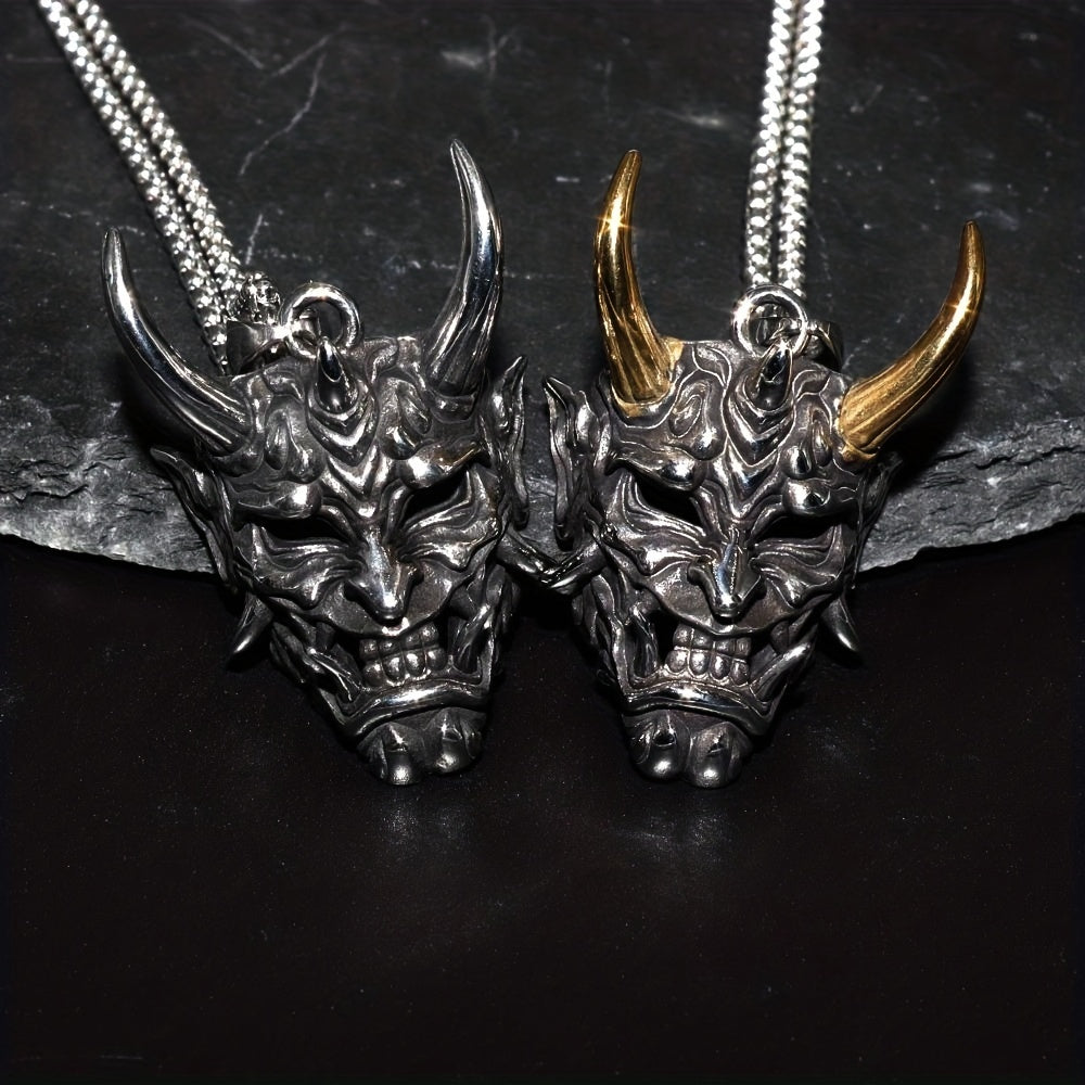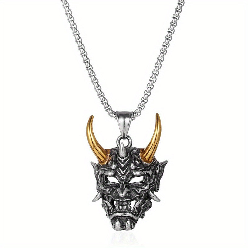 This unique cow head pendant necklace features a golden horn prajna design, perfect for Halloween or as a special gift. Made of durable stainless steel.