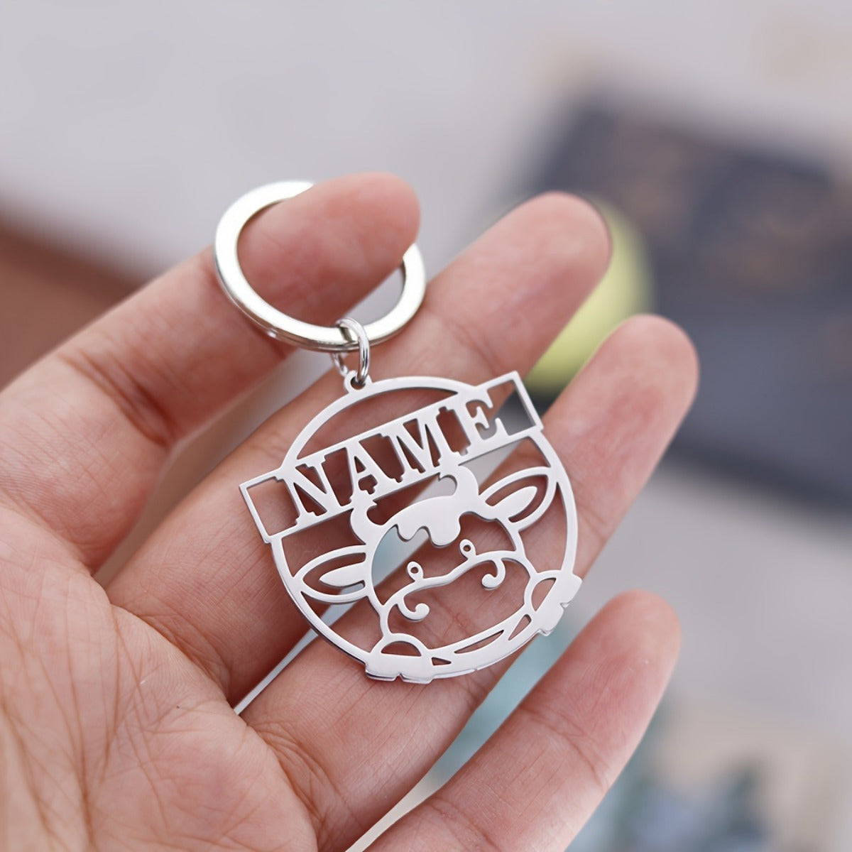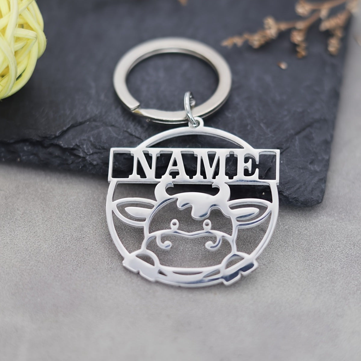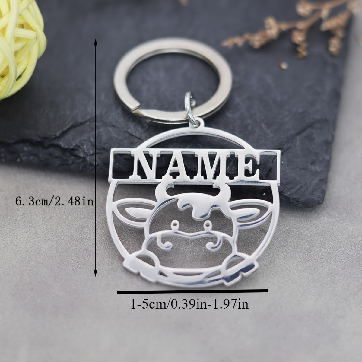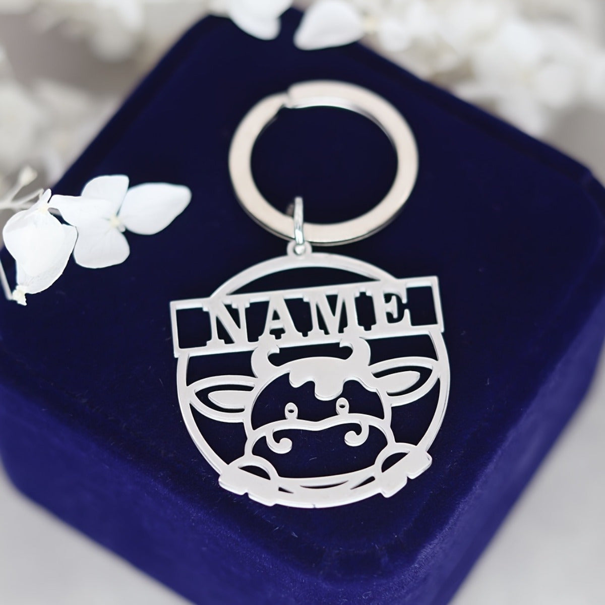 Get ready for school with this adorable Cow Name Keychain personalized with your name. A unique and fun accessory for your backpack or keys.