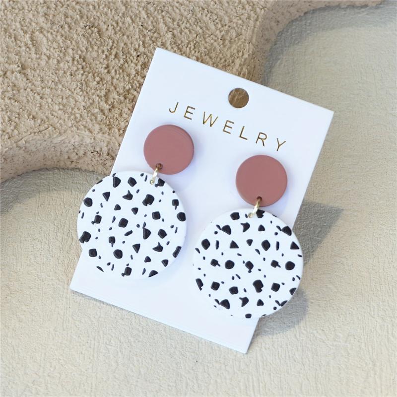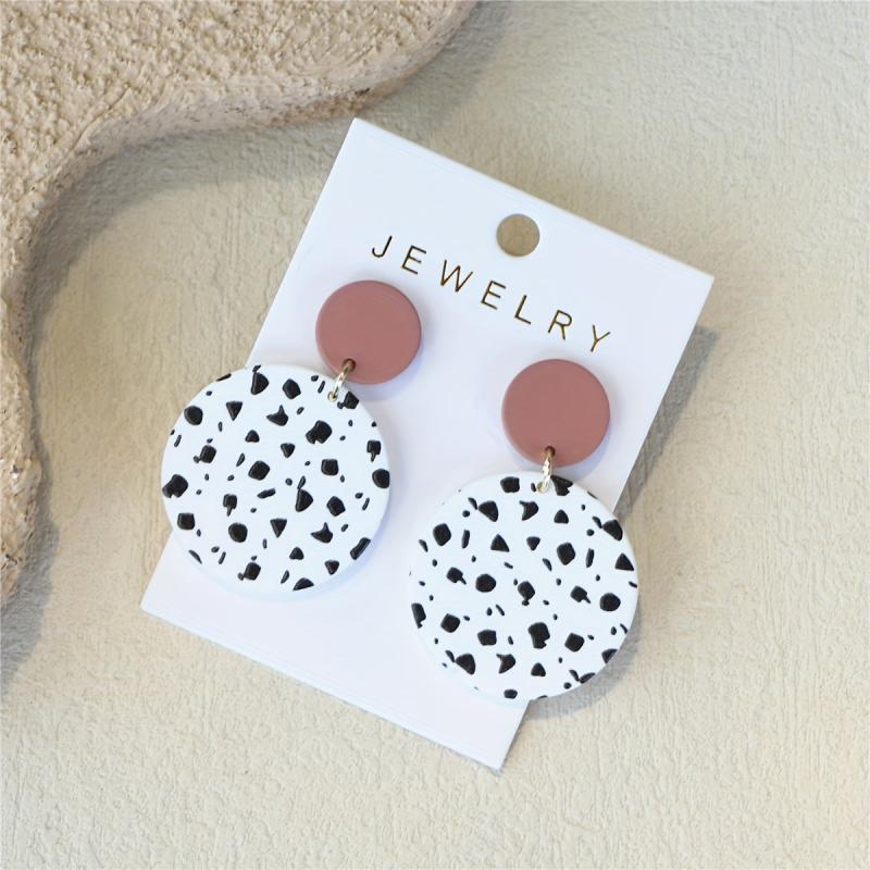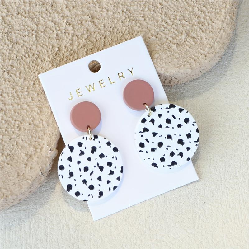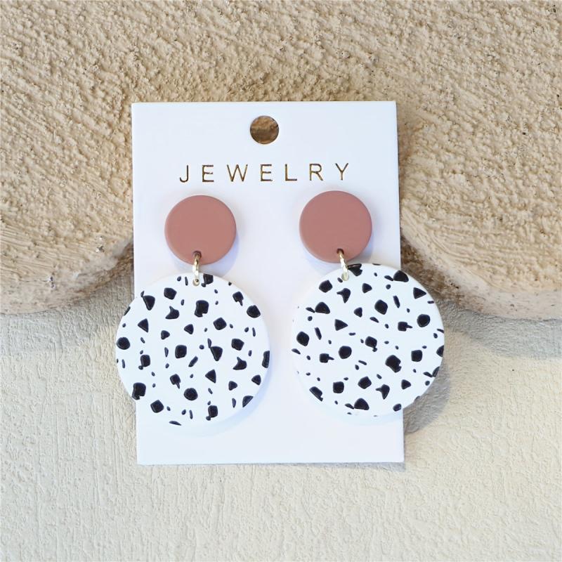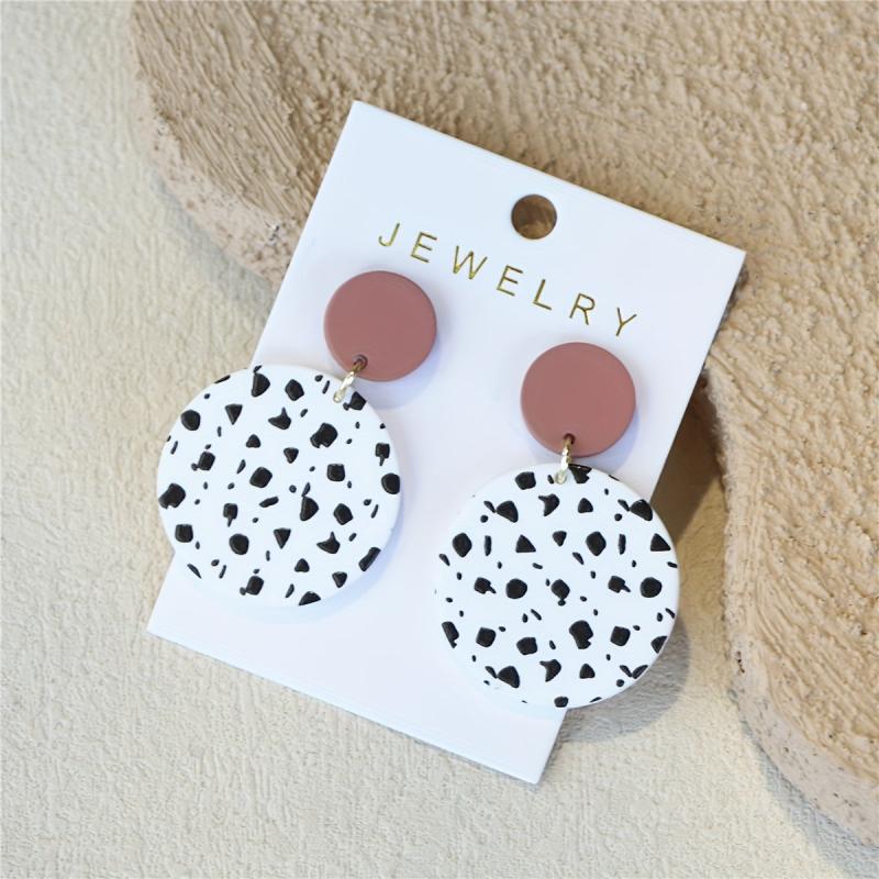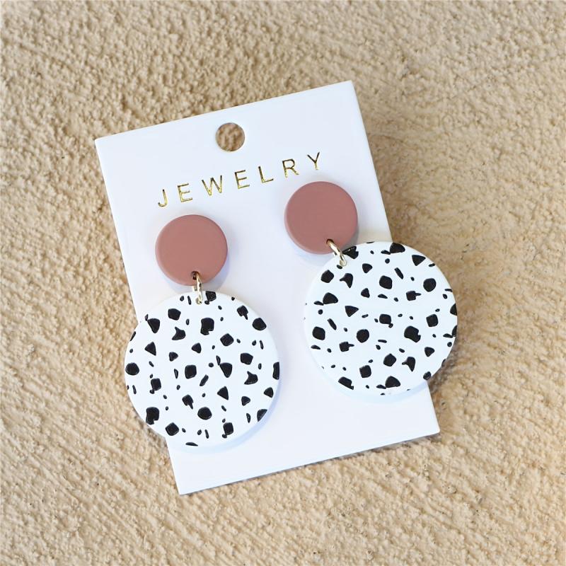These women's cow print acrylic earrings feature a unique crushed texture design. Perfect for both casual and formal occasions, these lightweight hoops add a touch of style to any outfit.