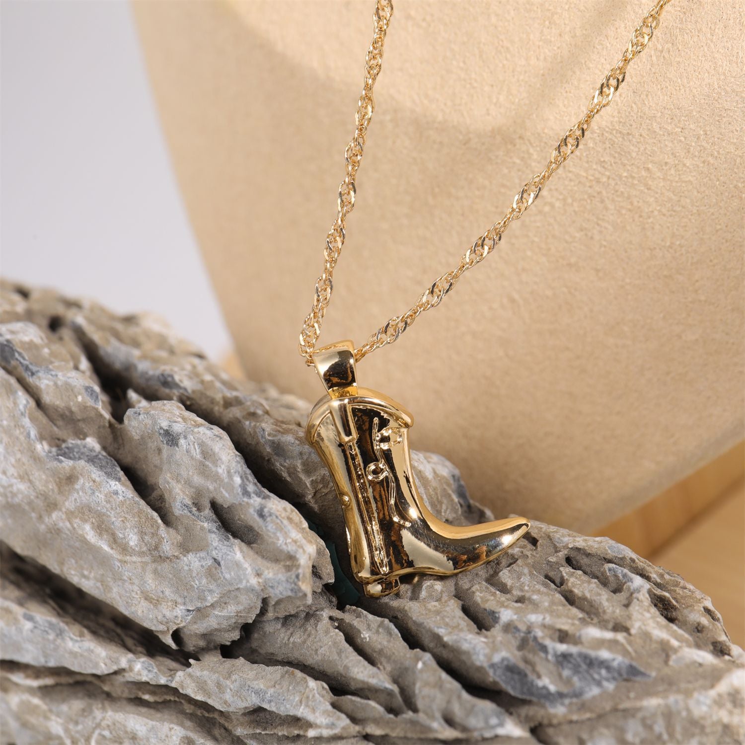 Add a touch of western charm to your outfit with this stylish cowboy boots pendant necklace. Made of high-quality plated stainless steel, this necklace exudes a vintage punk vibe. Perfect for everyday wear or as a unique gift for a loved one.