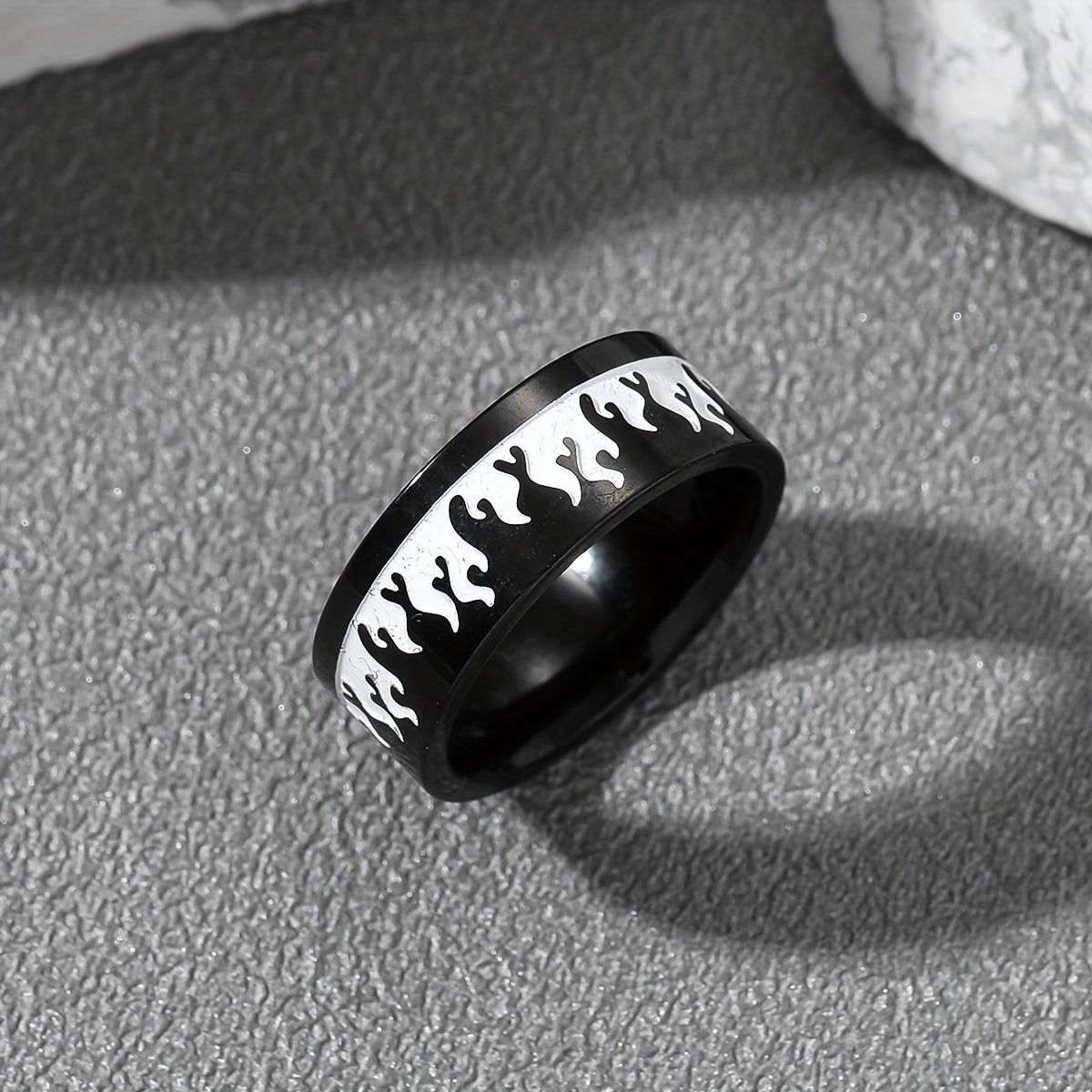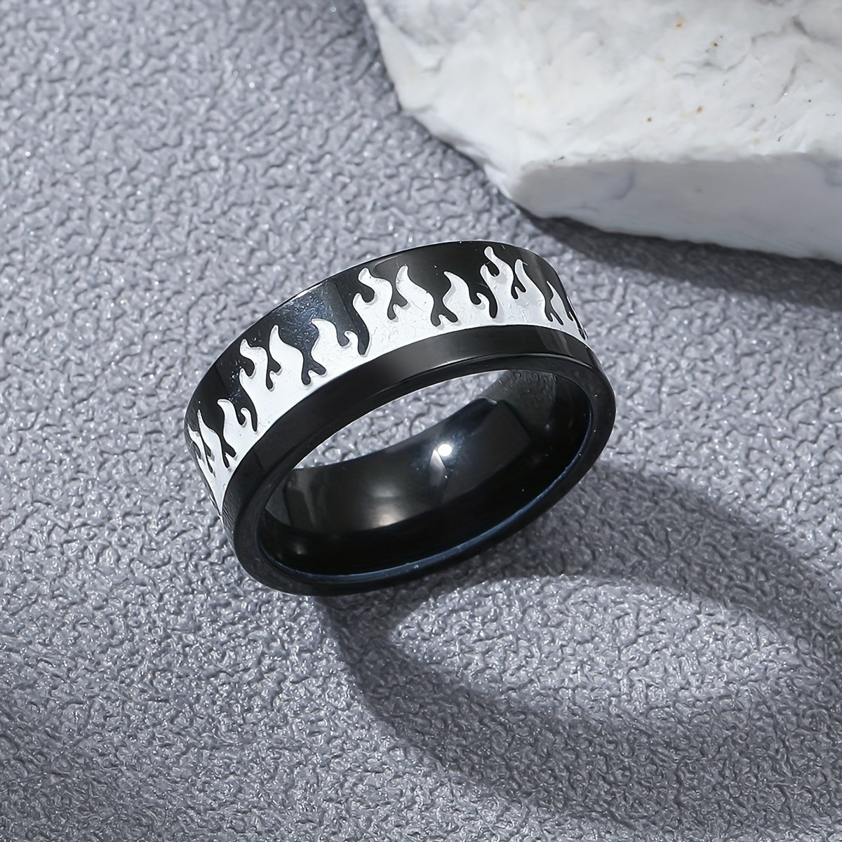 This unique stainless steel ring features a creative flame design that adds a touch of style to your look.