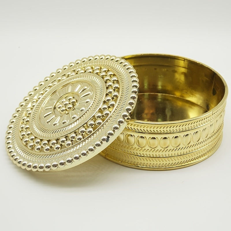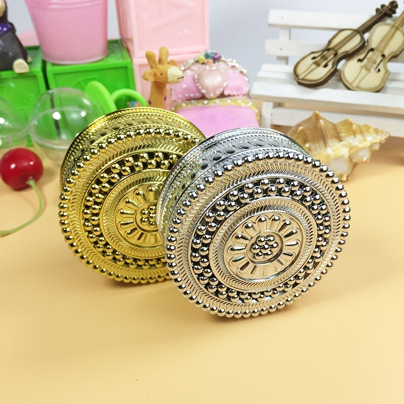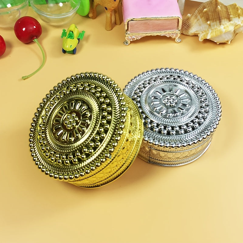 This dot chrysanthemum adorned box is perfect for storing your jewelry and accessories. Available in golden and silver options, it can also be used as a goodie or candy box.