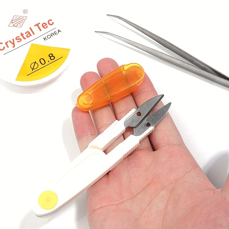 This combo set includes crooked mouth tweezers, scissors, and stretch string, perfect for DIY handicrafts and jewelry making projects.