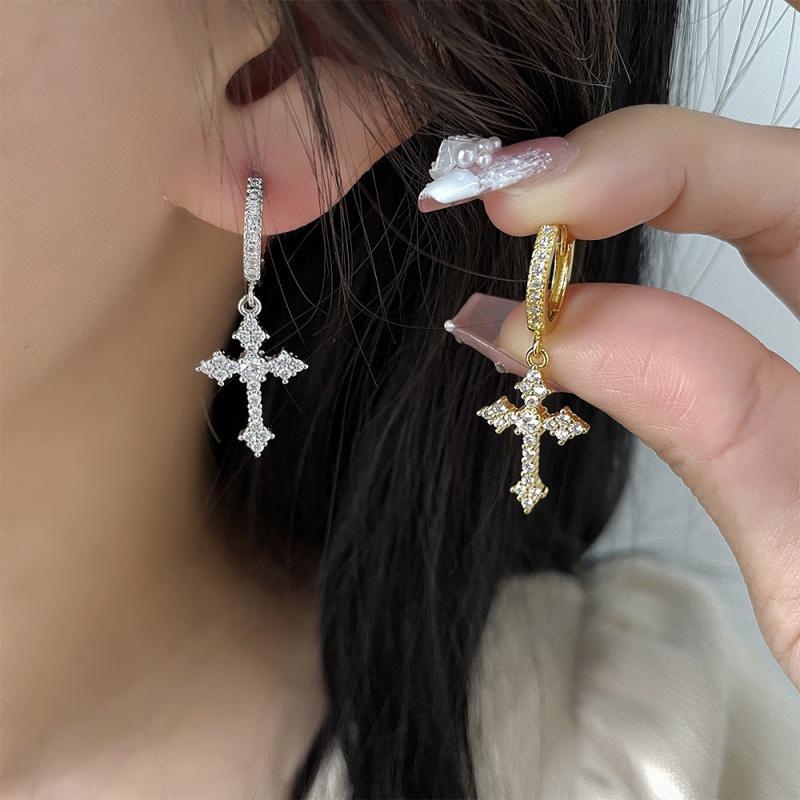 These beautiful earrings feature a pair of cross-shaped designs with shining synthetic cubic zirconia inlays. Made of copper, these faithful earrings are a stylish addition to any outfit.
