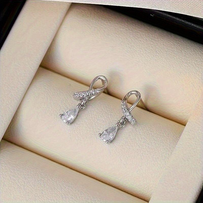 Hypoallergenic lightweight drop earrings featuring sparkling cubic zirconia, perfect for daily wear or parties.