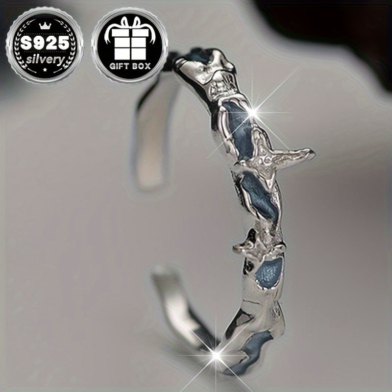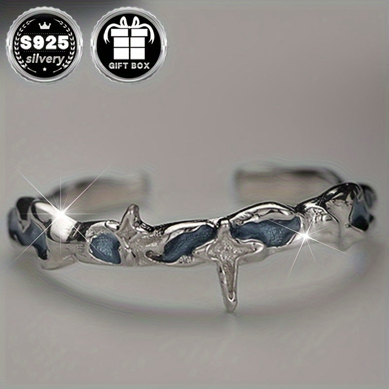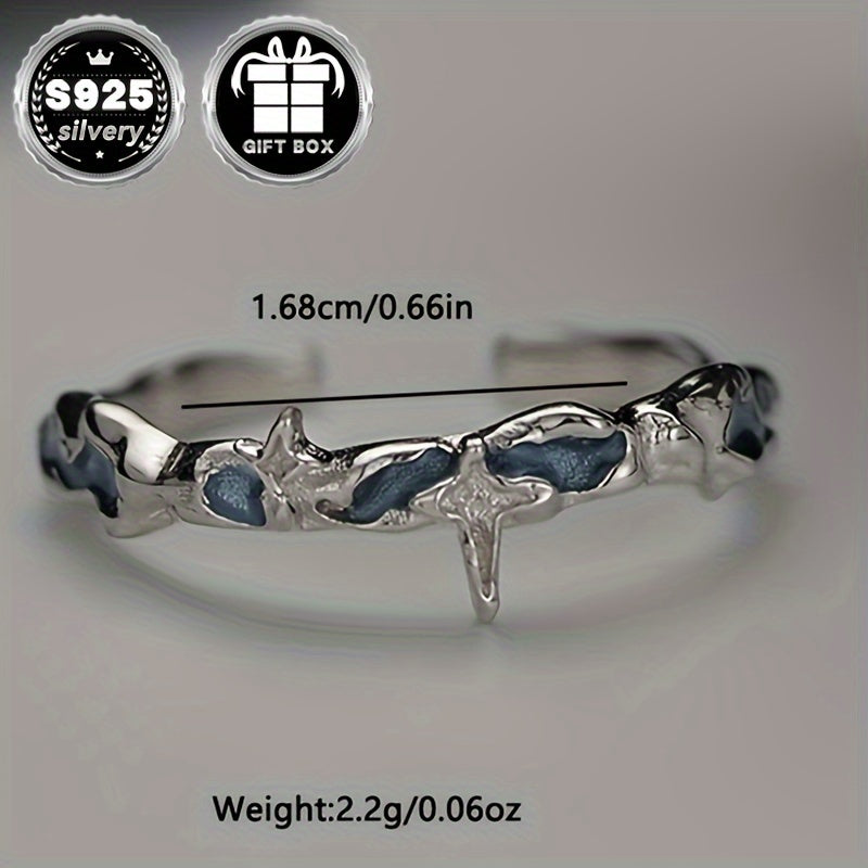 Elevate your style with this unique cross-shaped sea enamel star ring. Made of 925 silver, this ring is lightweight at 2.2 grams and perfect for daily wear.