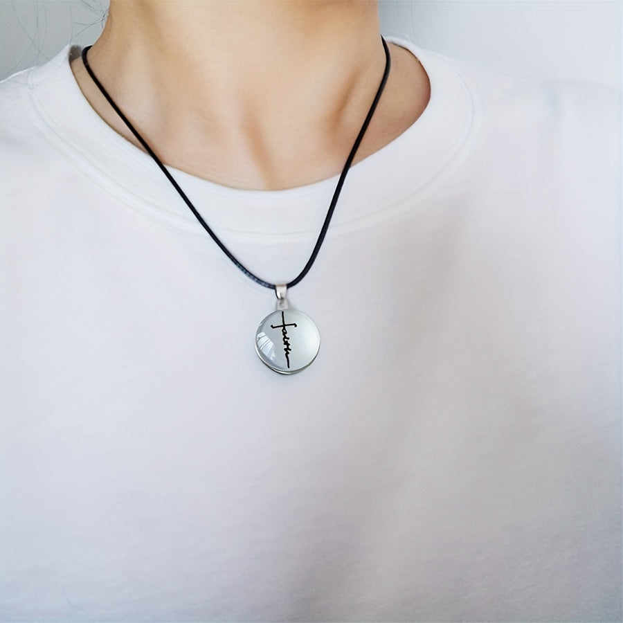 Elevate your style with this stunning cross pattern pendant necklace made of high-quality glass. Perfect for any occasion.