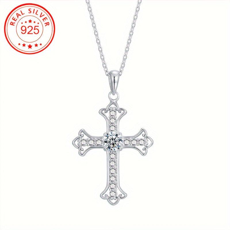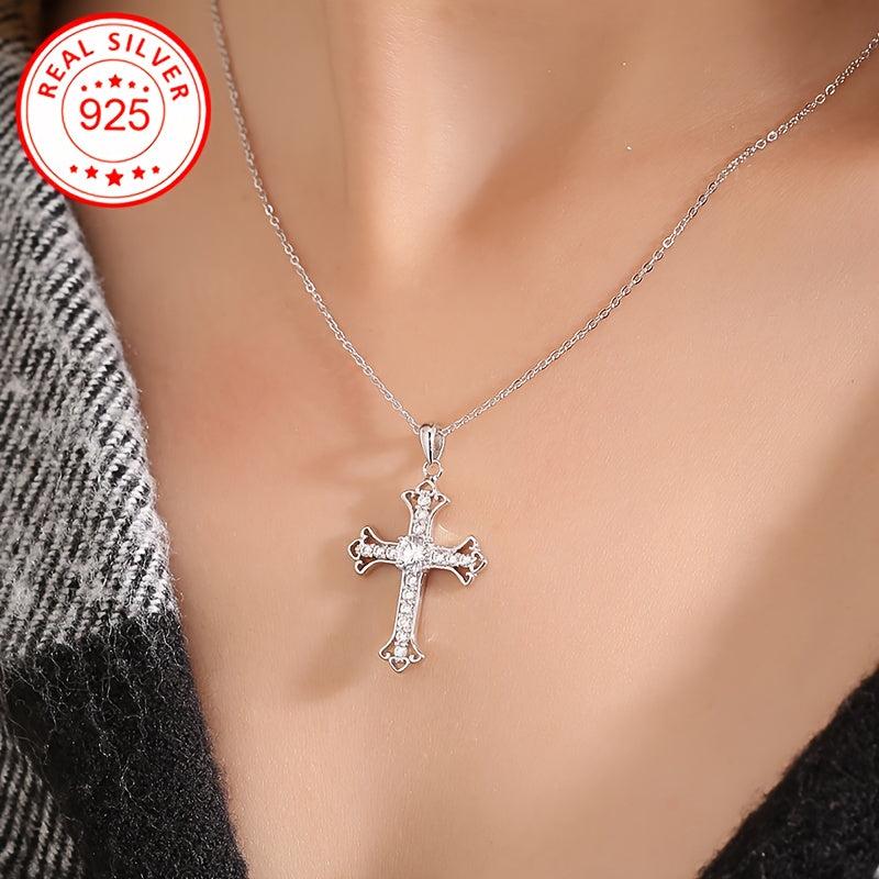 Elevate your style with this Y2K-inspired cross pendant necklace featuring inlaid cubic zirconia. Perfect for holiday parties or hip hop looks. Crafted from genuine S925 silver for a luxurious touch.