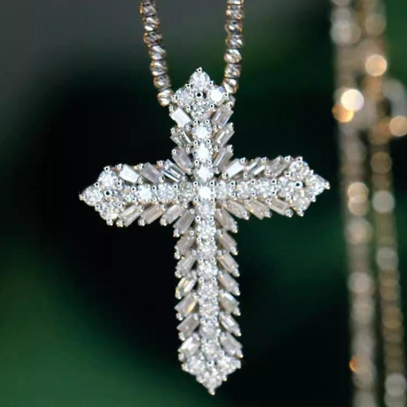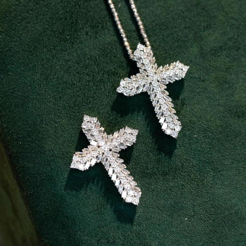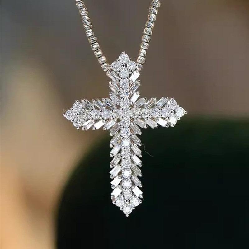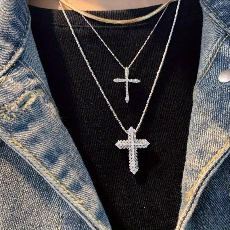 Add a touch of sparkle to your outfit with this double layer cross necklace featuring synthetic zirconia. Perfect for daily wear, parties, or Easter celebrations.