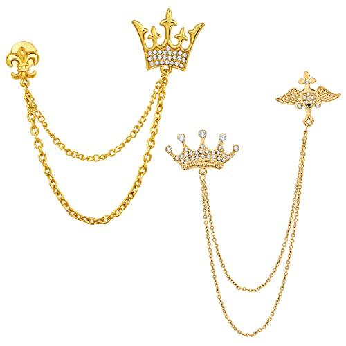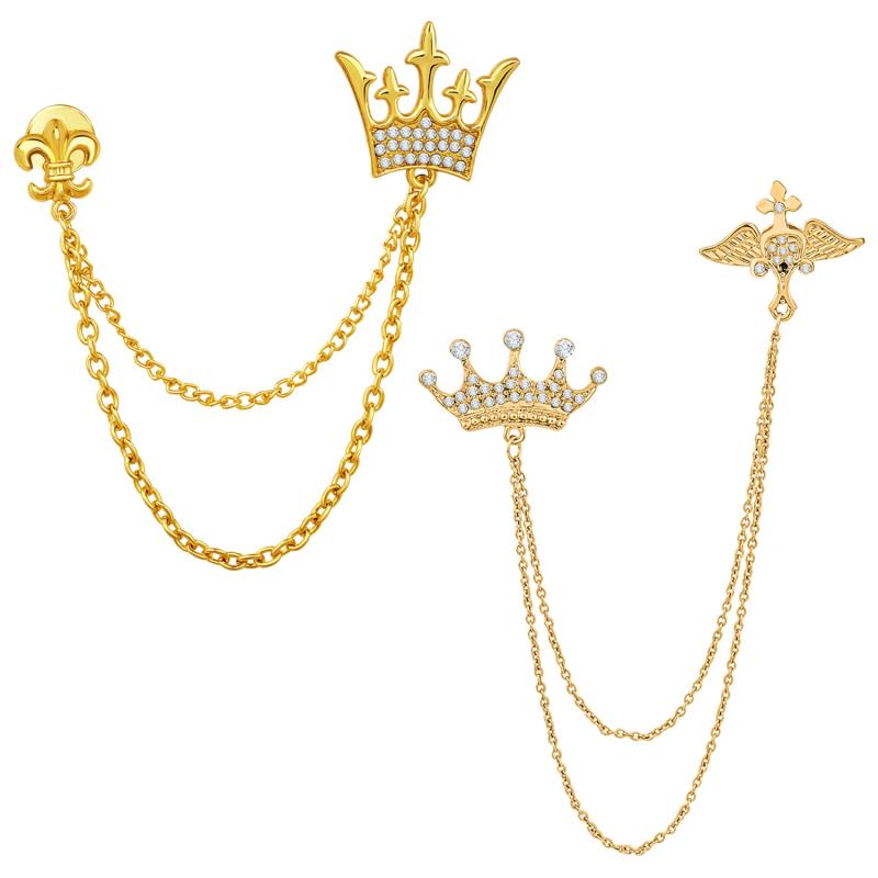 Elegant crown design brooch with layered chains and sparkling crystals for weddings.