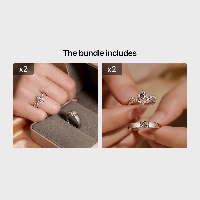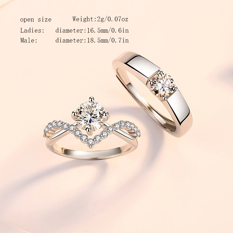 Crowning Love Couple Ring Moissanite Diamond Ring Zircon Crown Open Pair Ring