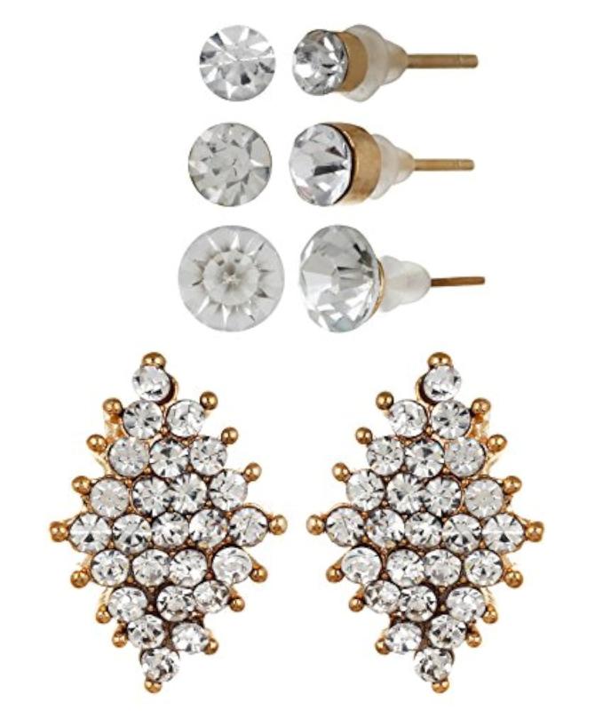 Elegant jewellery set featuring crystal and pearl earrings for women.