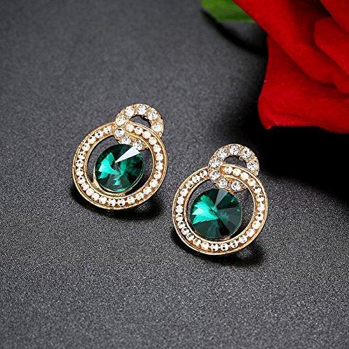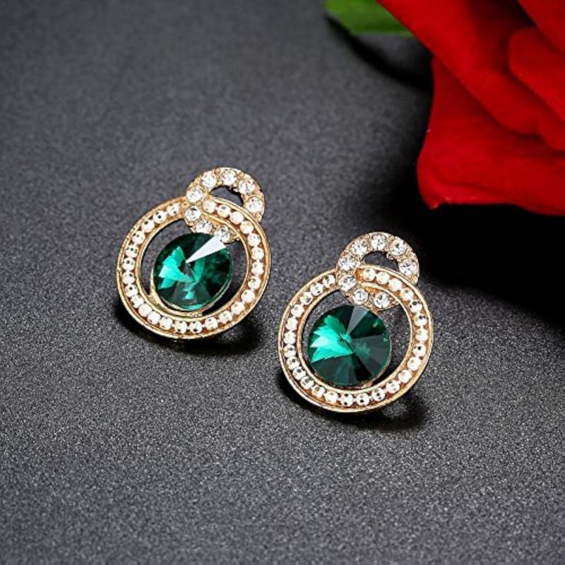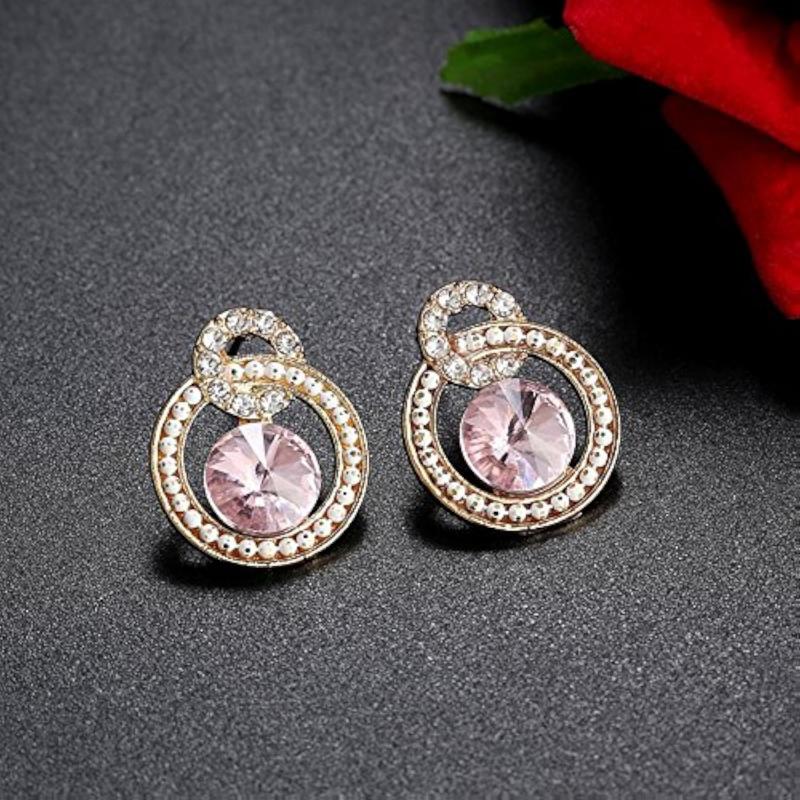 Elegant earrings featuring heart and round crystal elements. Perfect for adding a touch of sparkle to any outfit.