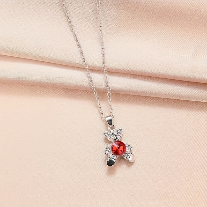 This stylish crystal bear necklace features a ruby pendant that makes a perfect gift for any occasion. Give this unique piece to your loved one to show your affection and appreciation.