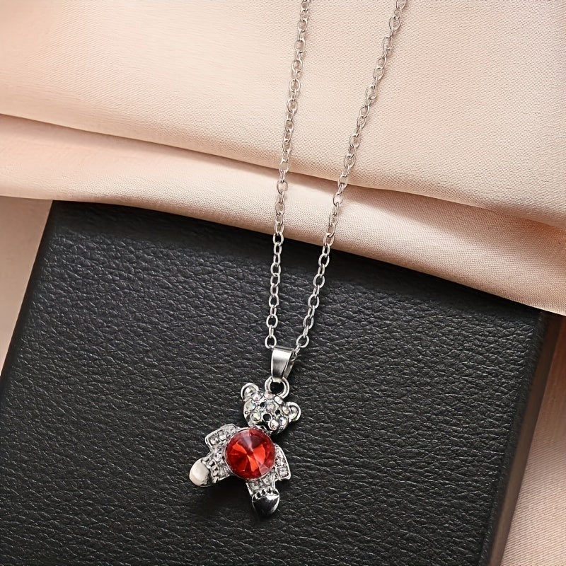 Crystal Bear Necklace For Men And Women Ruby Pendant Anniversary Gift
