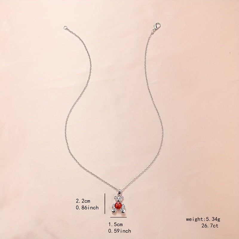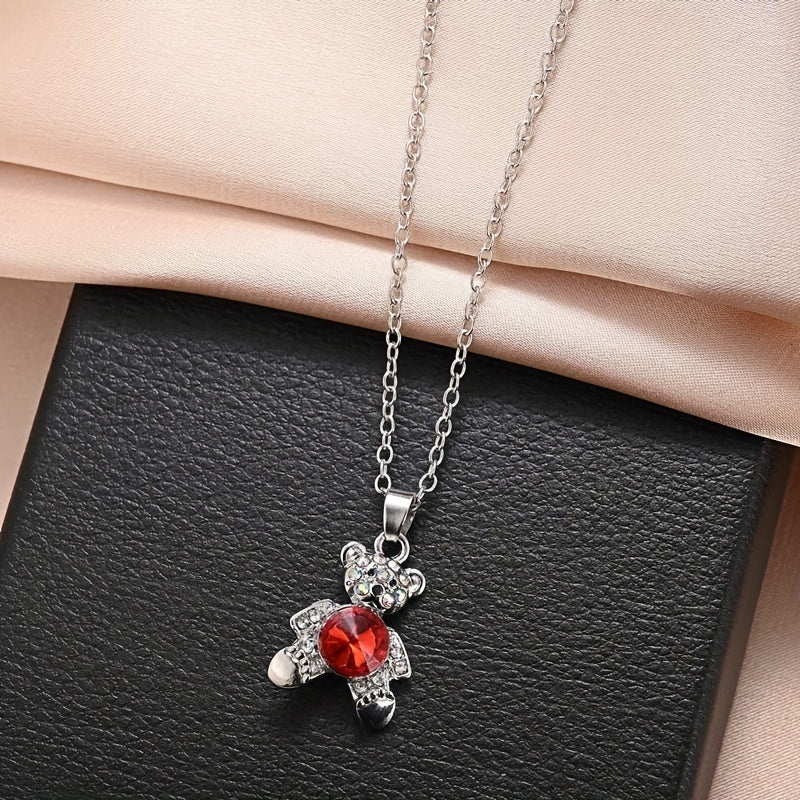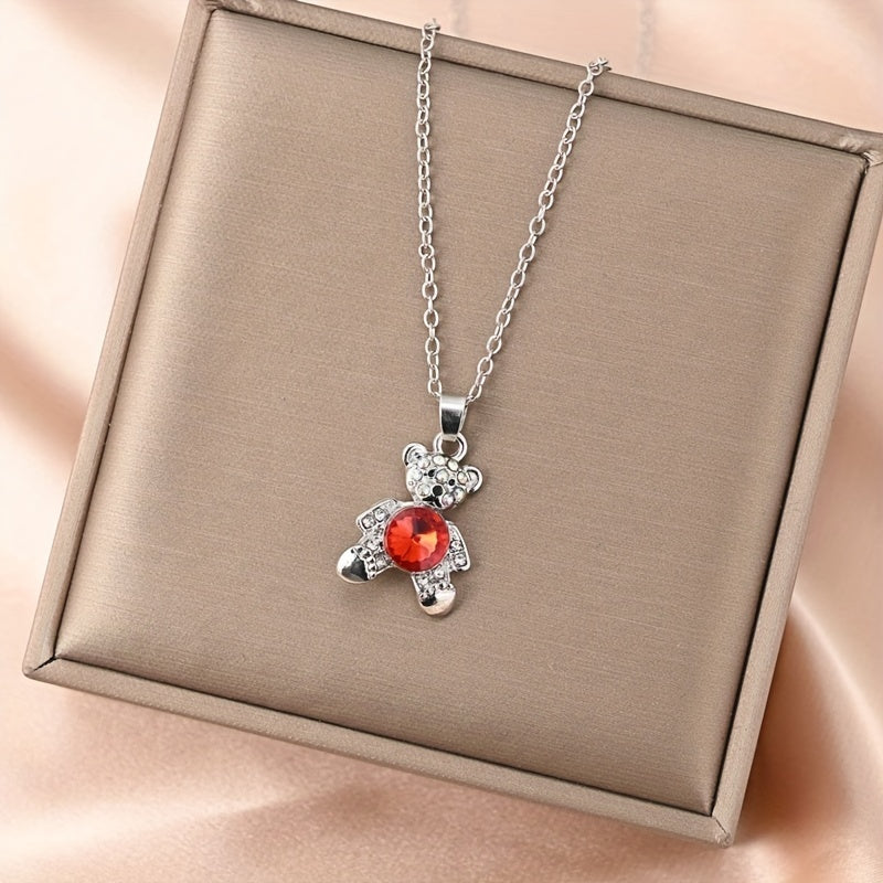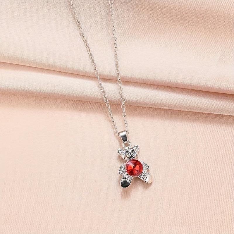 Elegant crystal bear necklace with a stunning ruby pendant, perfect for adding a touch of glamour to any outfit.