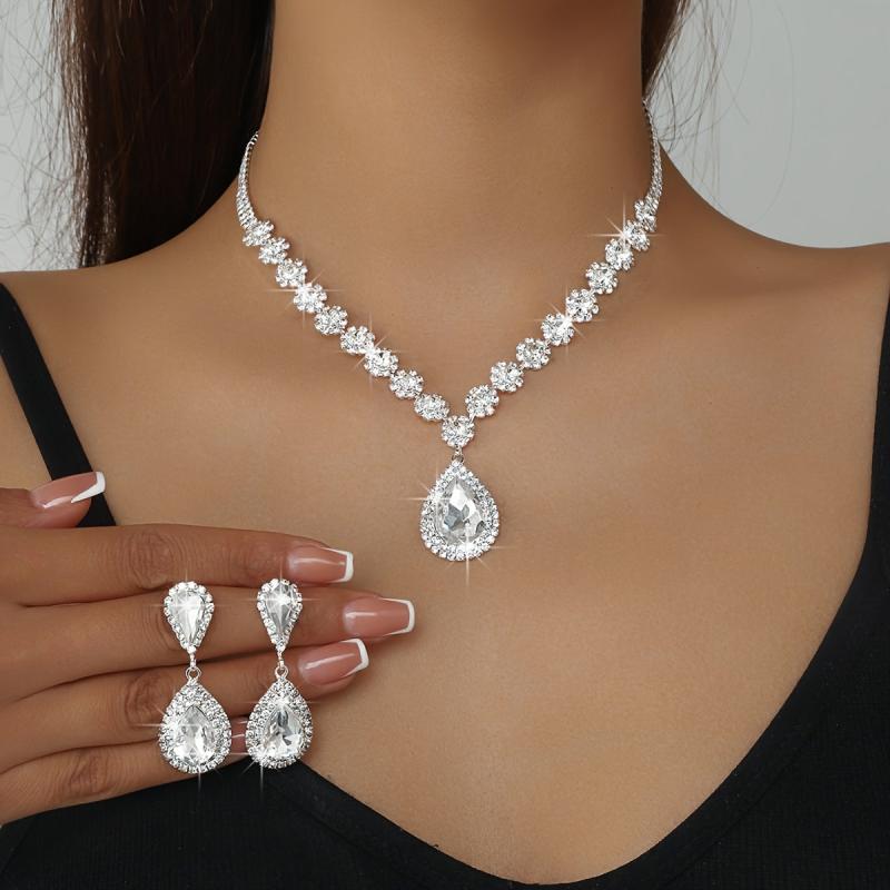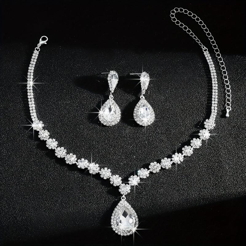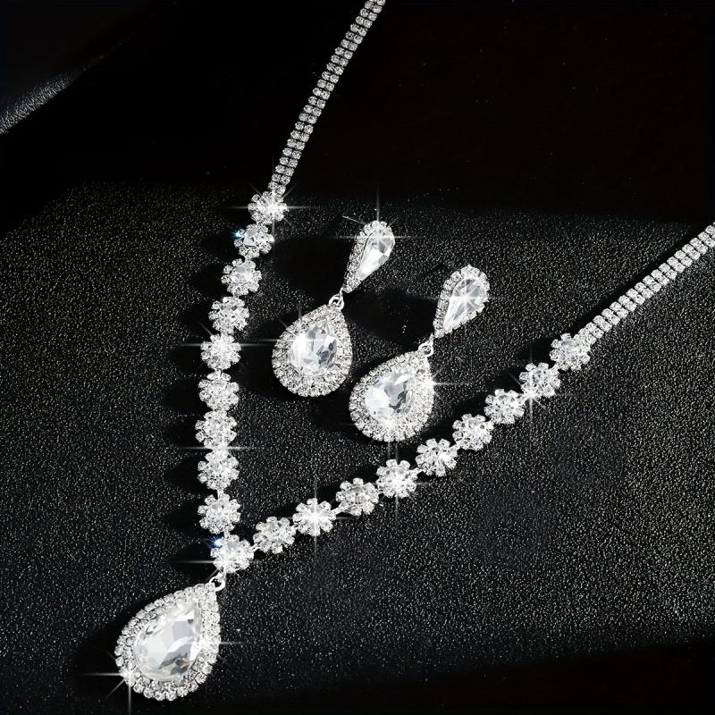 Enhance your style with this stunning crystal drop necklace and earrings set. Ideal for weddings, parties, and formal events, this K golden plated jewelry will add a touch of elegance to your ensemble.