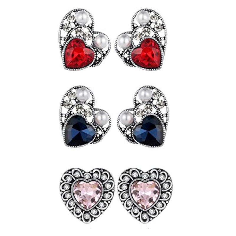 Enhance your style with this exquisite Crystal Elements Glittering Colors Artistic Heart Edition earrings collection. This combo includes 3 pairs of lustrous earrings in a variety of colors.