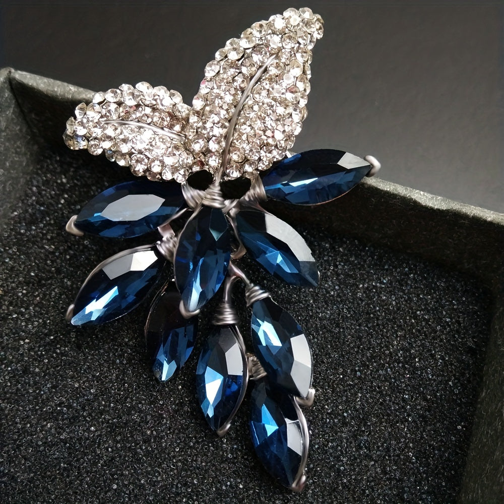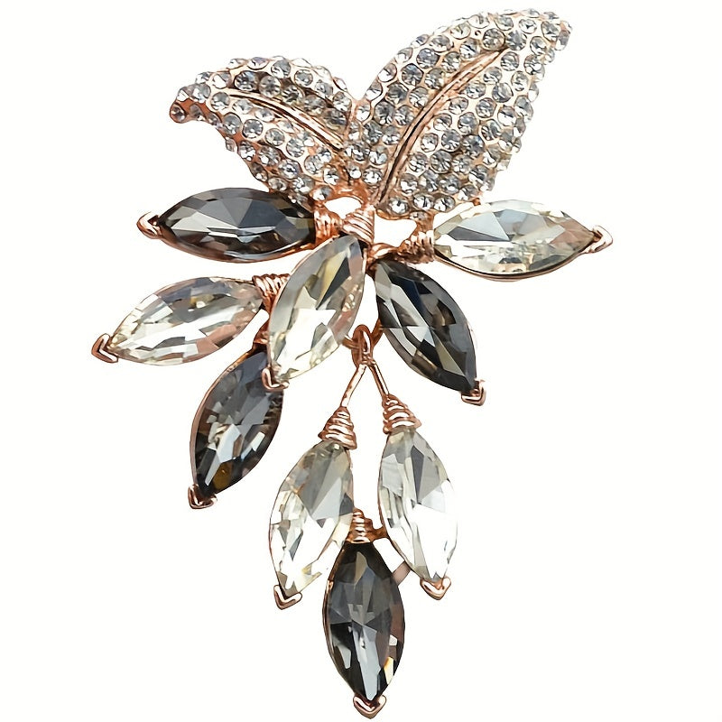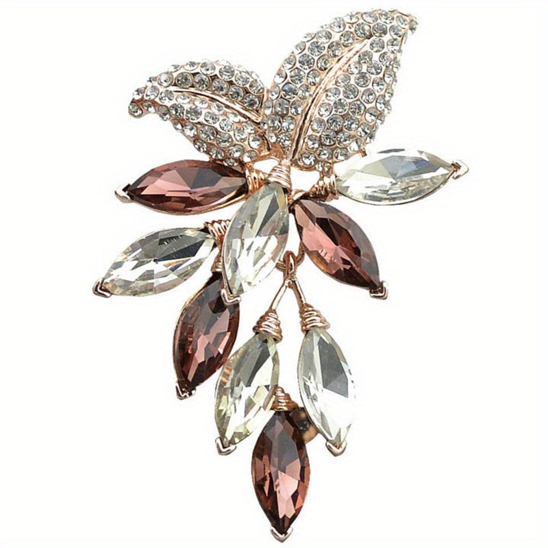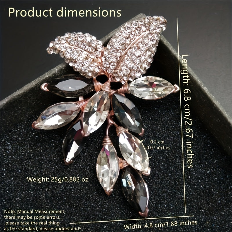 This exquisite brooch features a grape shape design with dazzling rhinestones and delicate leaf accents. Perfect for adding a touch of elegance to your outfit.