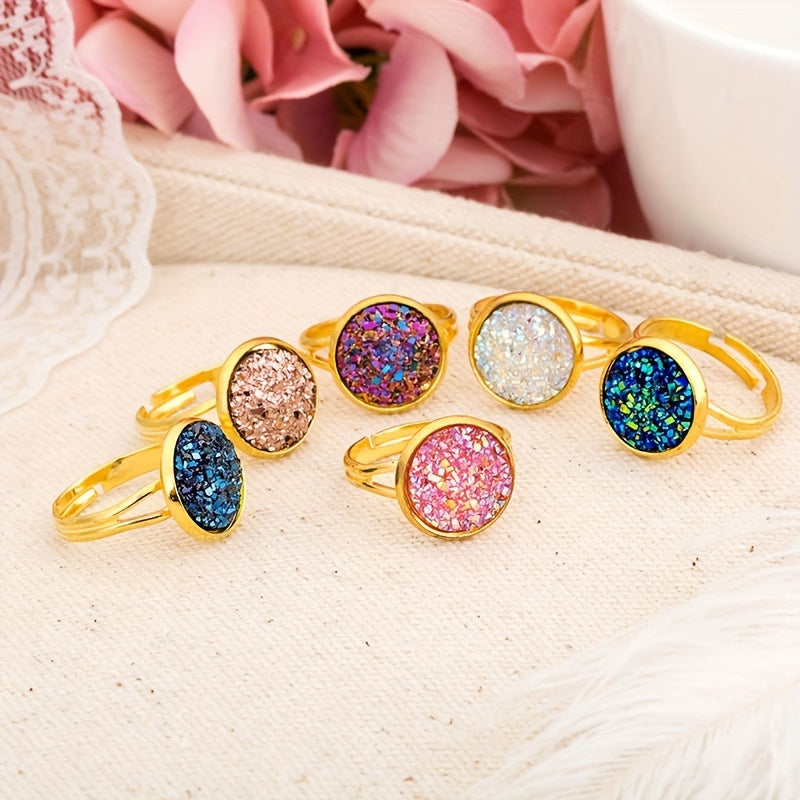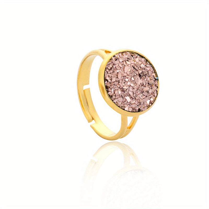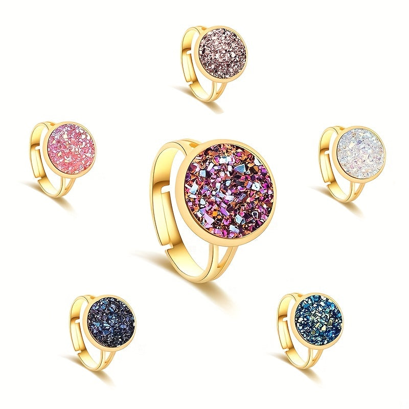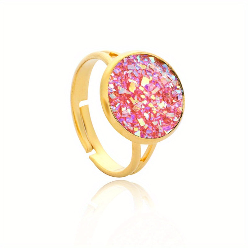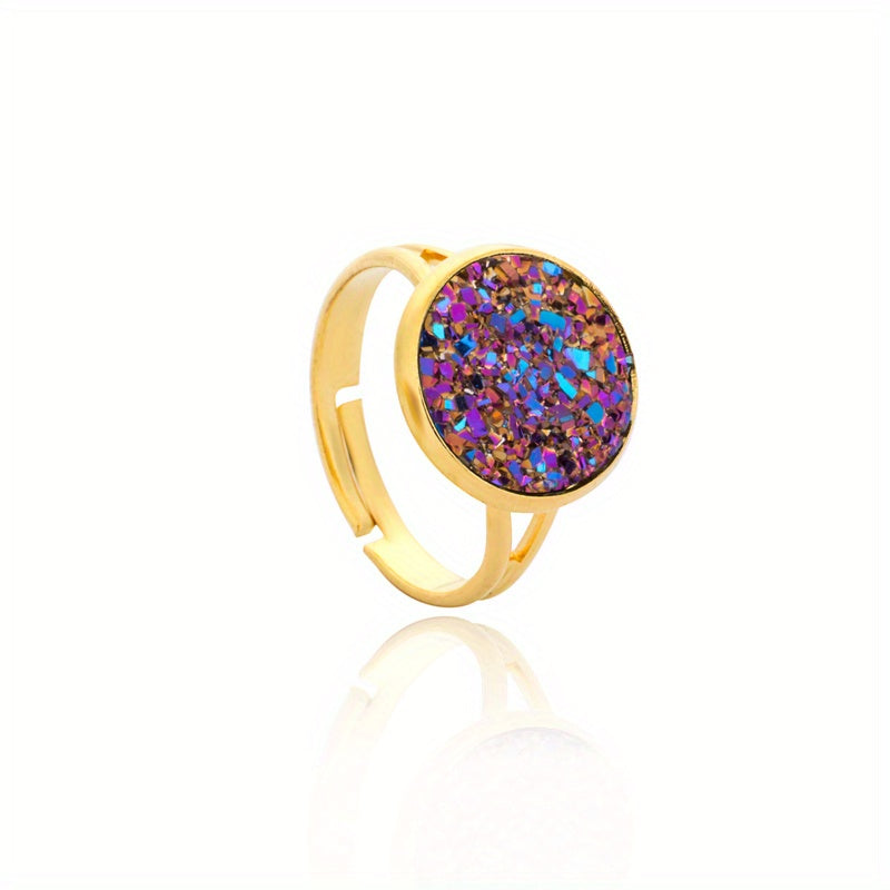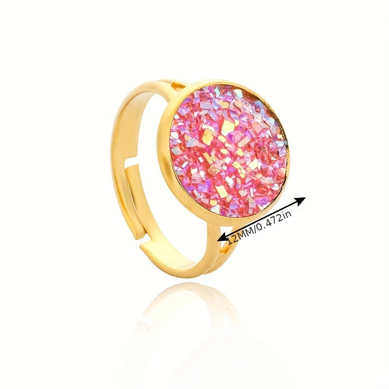 This band ring features natural crystal inlays, perfect for daily wear or party outfits. Available in various colors to match your style.