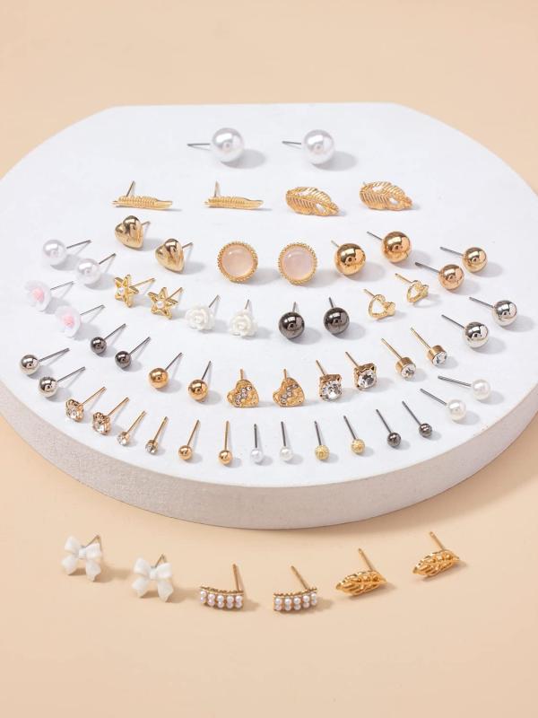 Enhance your style with this set of 30 pairs of crystal pearl earrings, perfect for any occasion.
