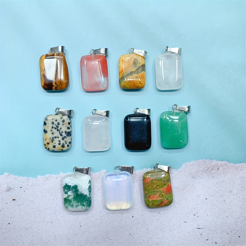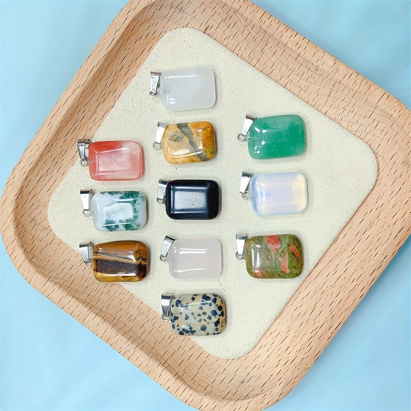 Add a touch of natural beauty to your necklace creations with this rectangle-shaped crystal pendant featuring a mix of healing stones. Perfect for DIY projects and creating unique jewelry pieces.