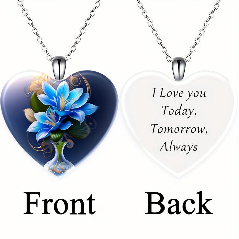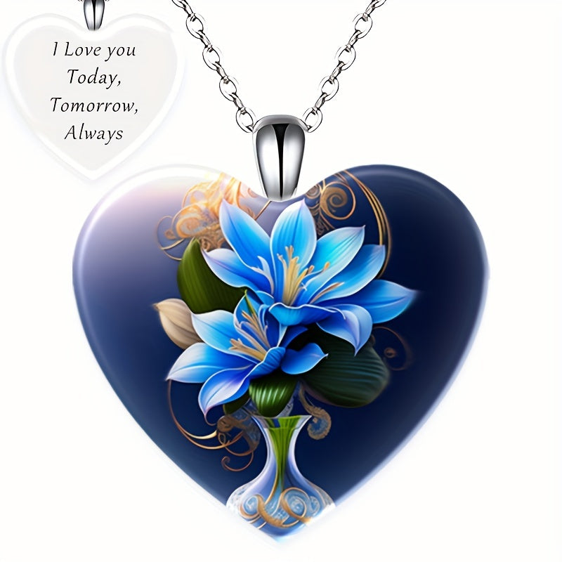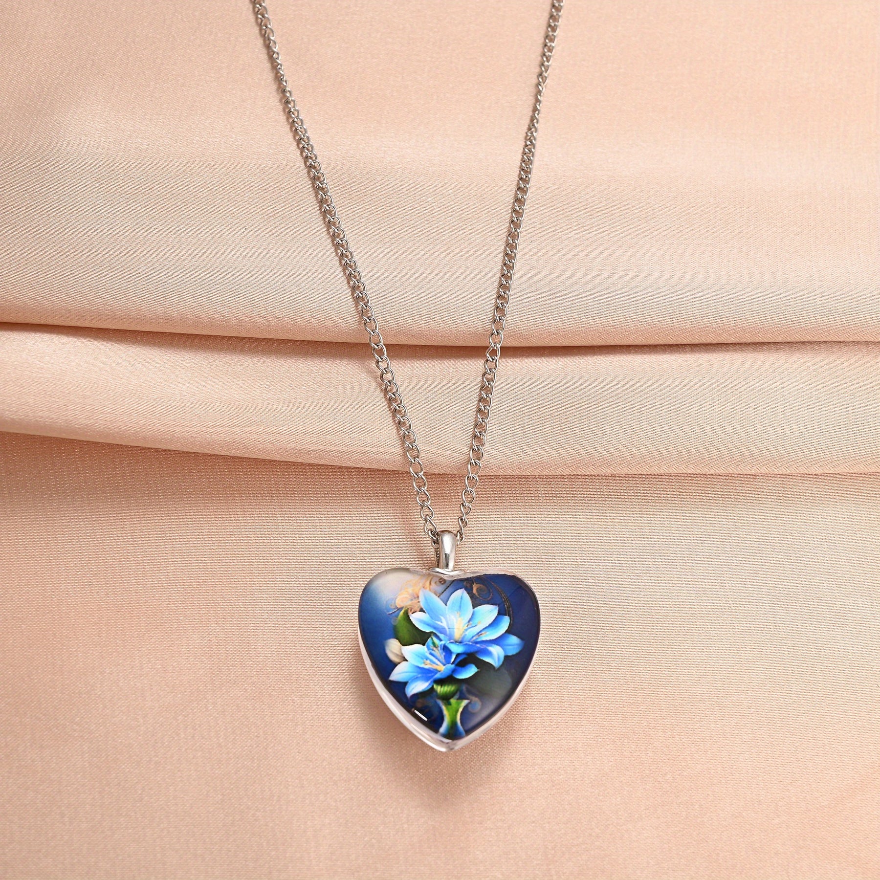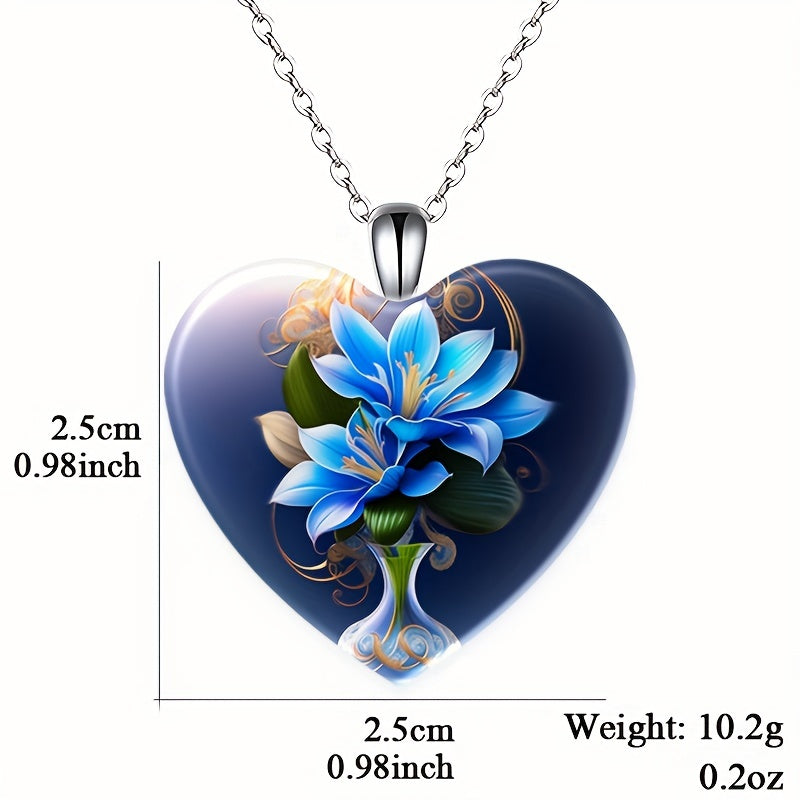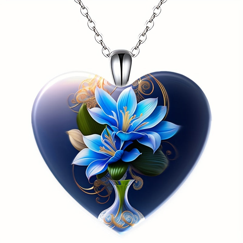 Crystal Pendant Necklace Floral Print Women's Jewelry