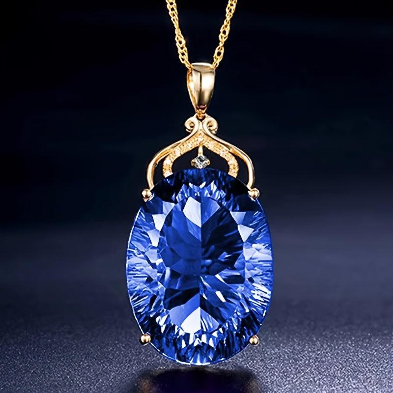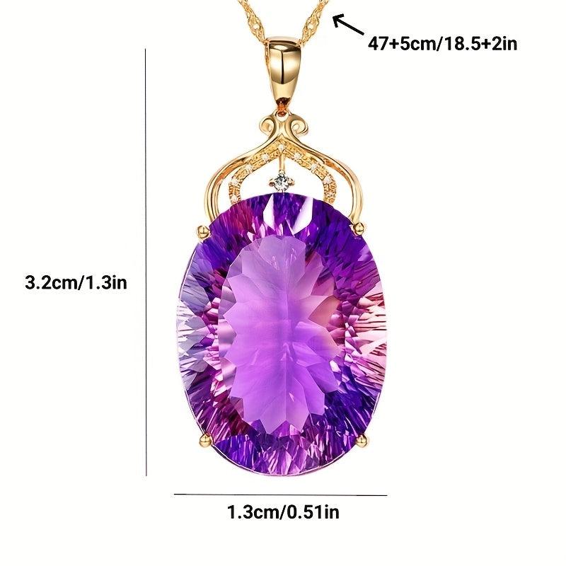 Elevate your style with this stunning Crystal Pendant Necklace featuring a purple gemstone set in a golden tone iron. Perfect for parties, banquets, and all-season wear.