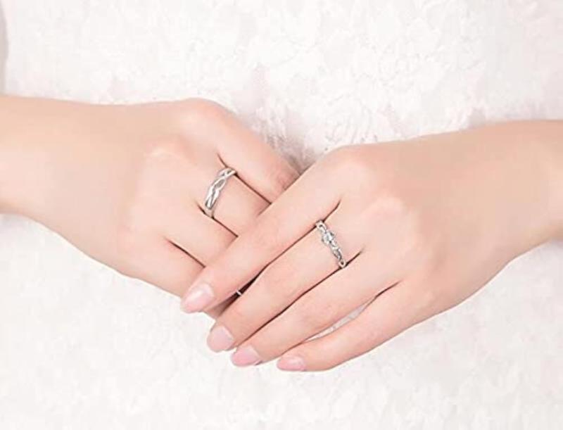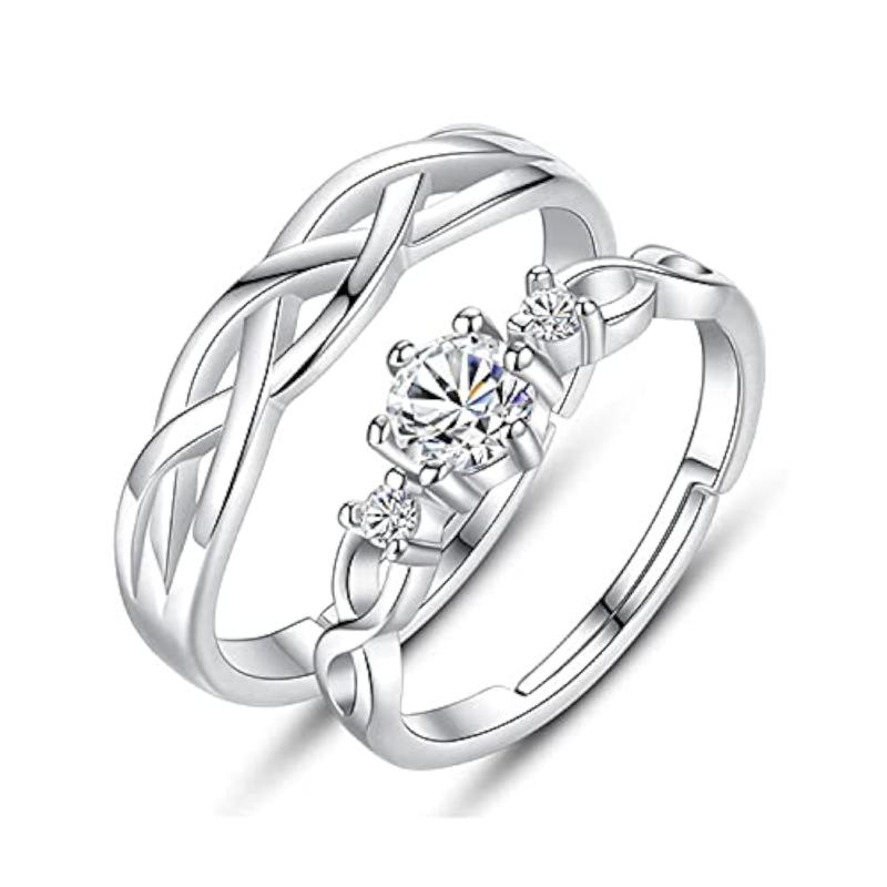 Elegant and romantic adjustable couple ring featuring sparkling crystals. Perfect for proposing or expressing love.