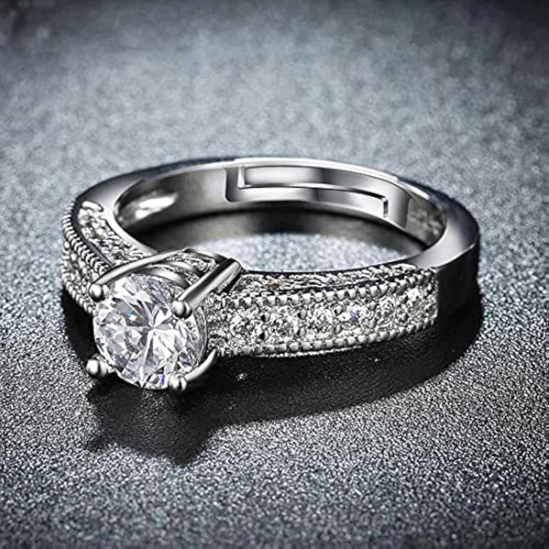 Elegant silver plated ring with stunning crystal design, suitable for all occasions.