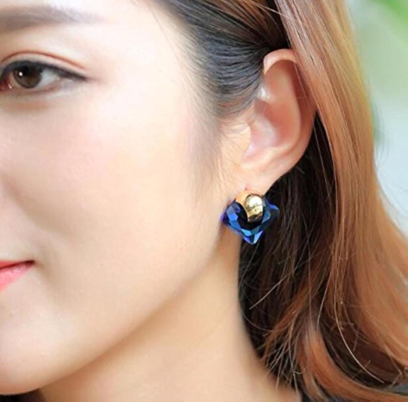 Add a touch of glamour with these crystal stud earrings that shine and sparkle. Perfect for any occasion.