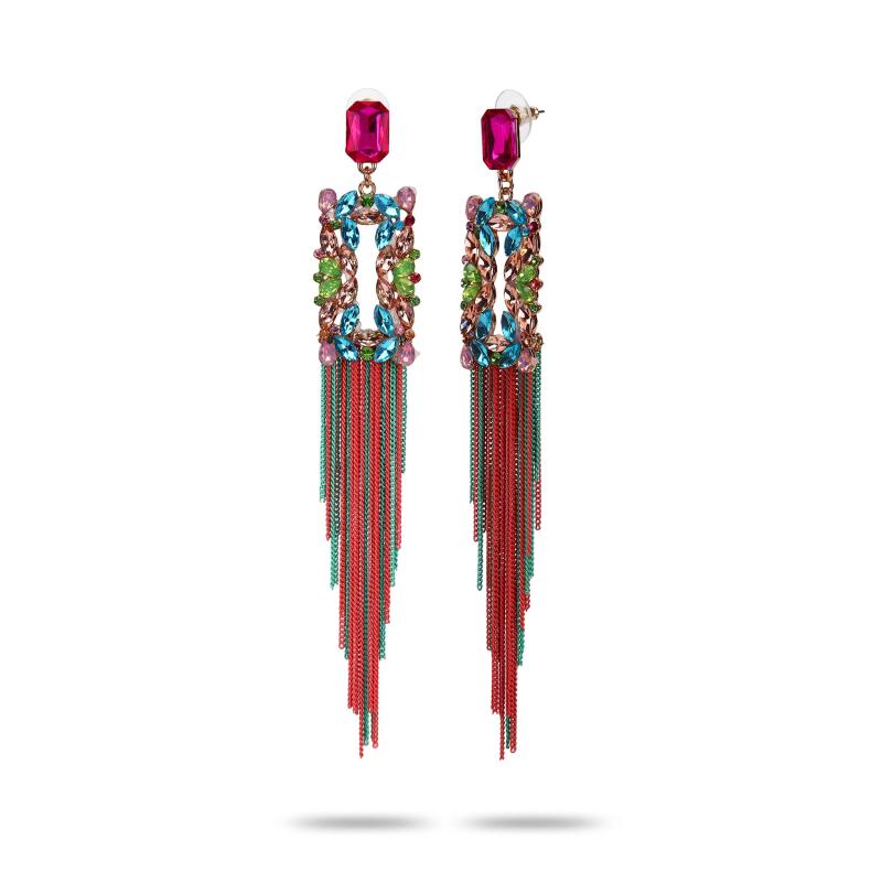 Enhance your style with these elegant crystal tassel earrings. Perfect accessory for various occasions.