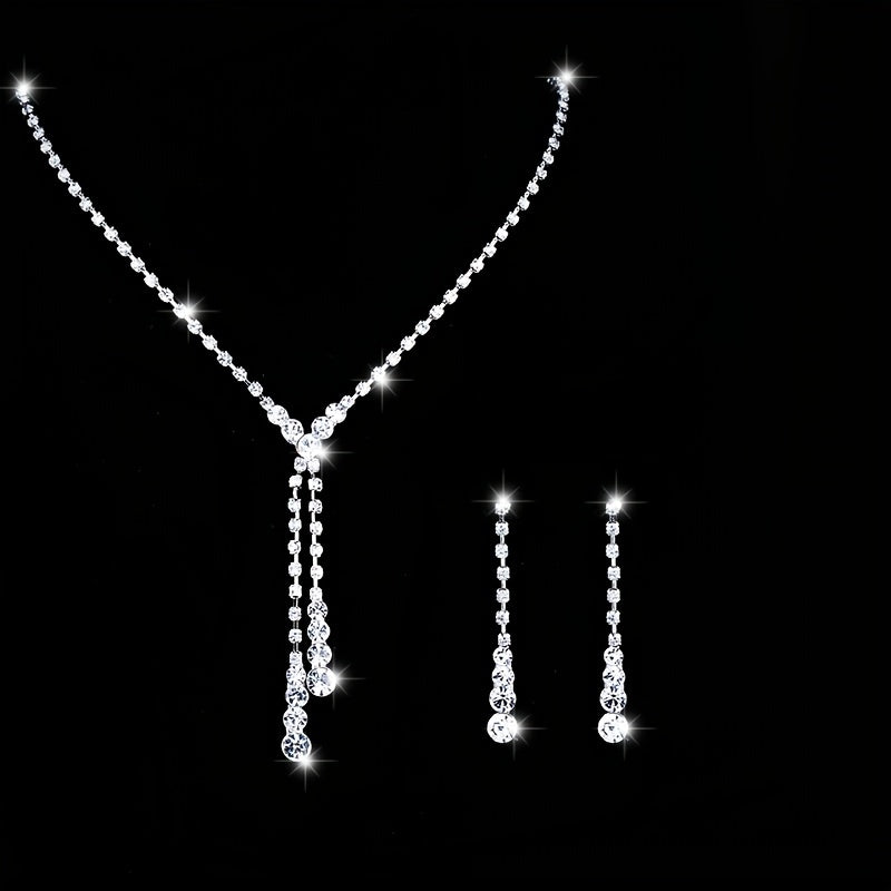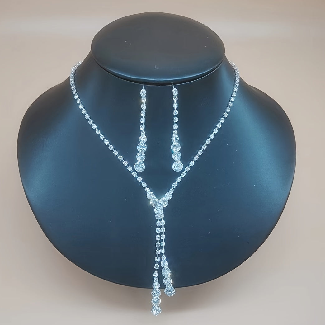 Complete your wedding or prom look with this stunning tassel jewelry set. The Y shape pendant necklace pairs perfectly with the dangle chain earrings for a glamorous touch.