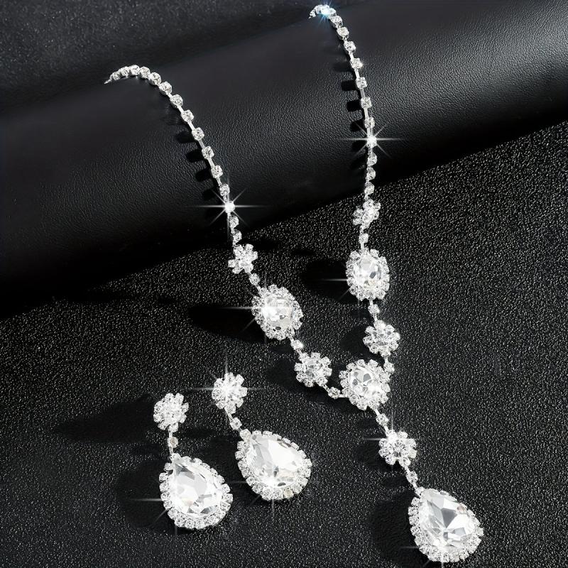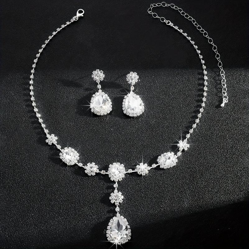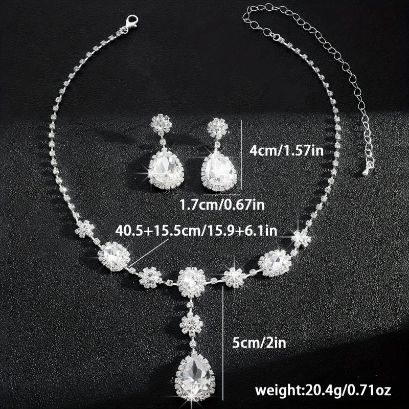Add elegance to your outfit with this stunning crystal teardrop jewelry set. Perfect for brides, weddings, and daily wear, this set features a copper base with a golden plated finish.