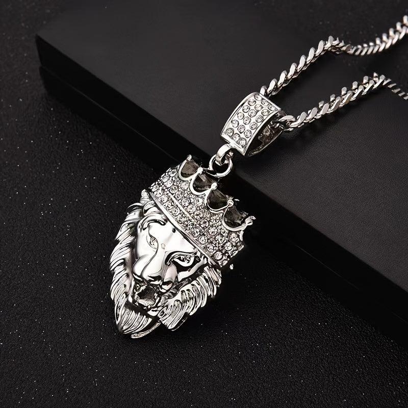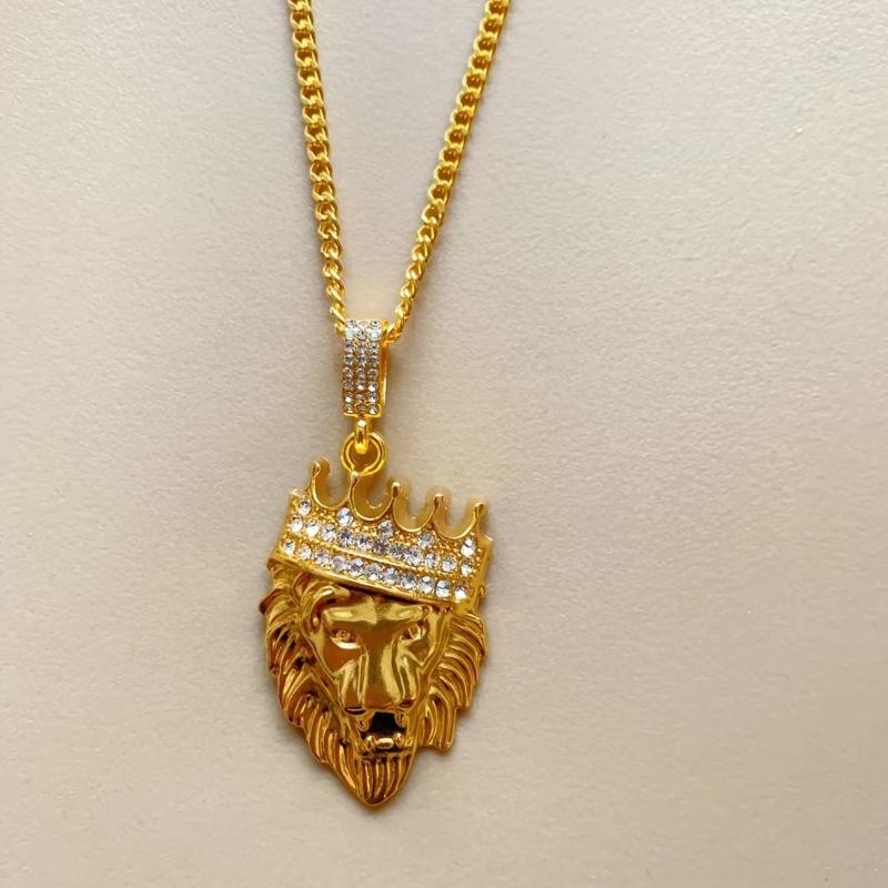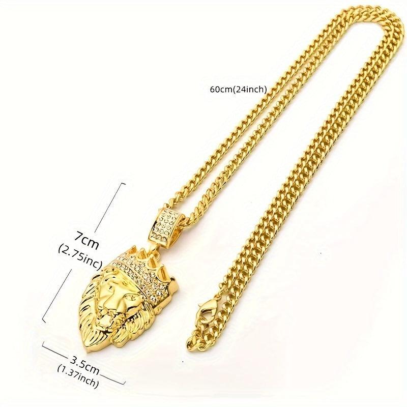 Add a touch of royalty to your outfit with this Cuban chain necklace featuring a crown and lion pendant. This hip hop style jewelry is golden plated and embellished with sparkling crystals. Makes a perfect holiday gift for Christmas.