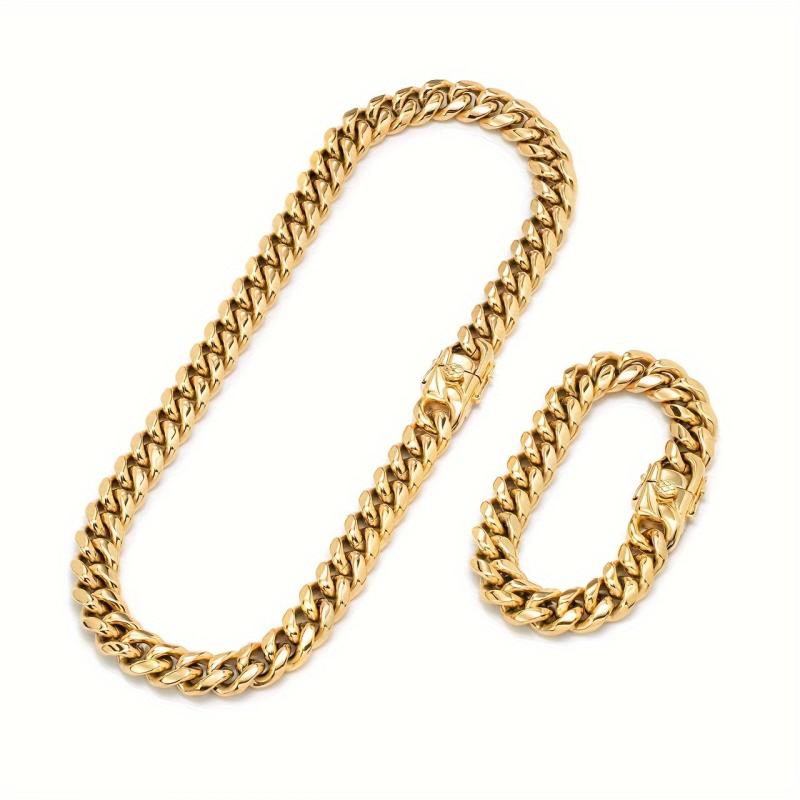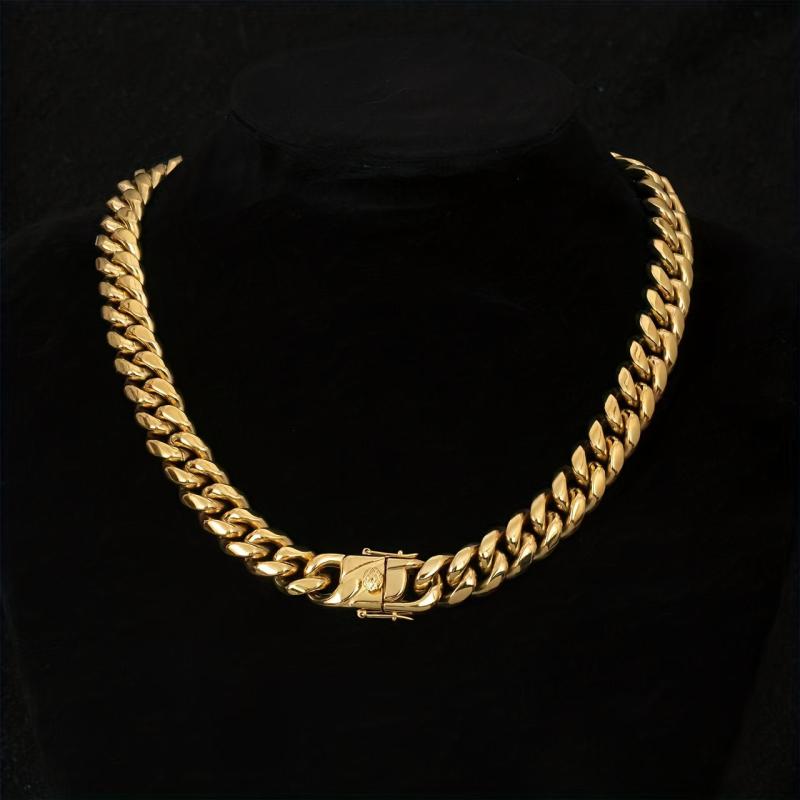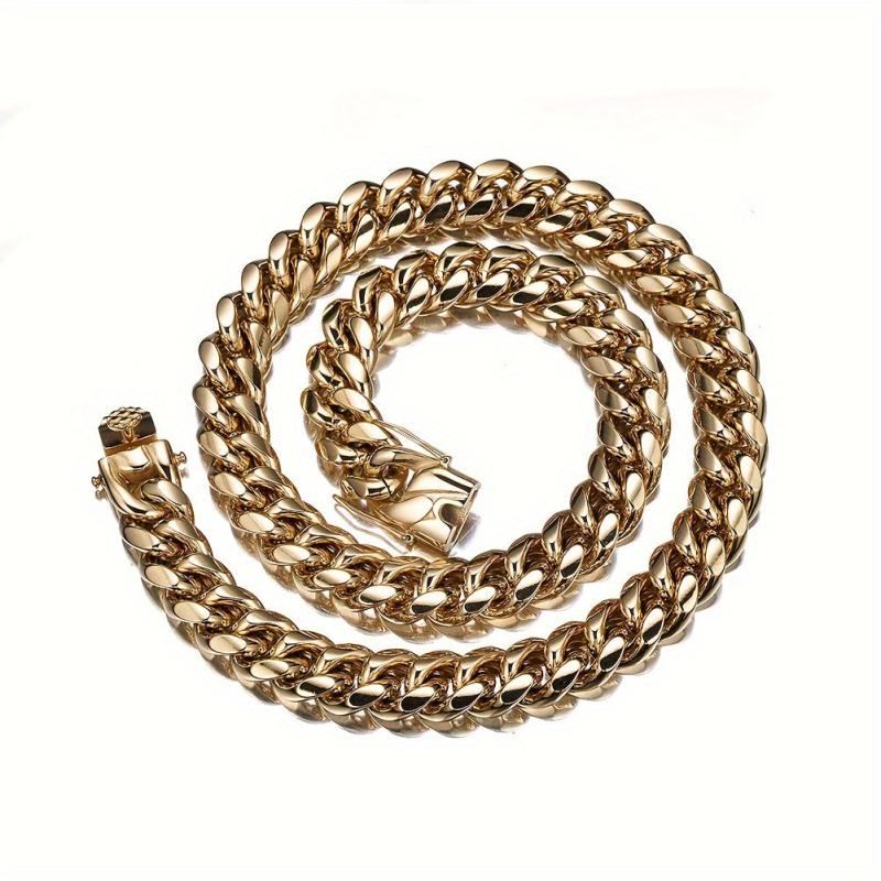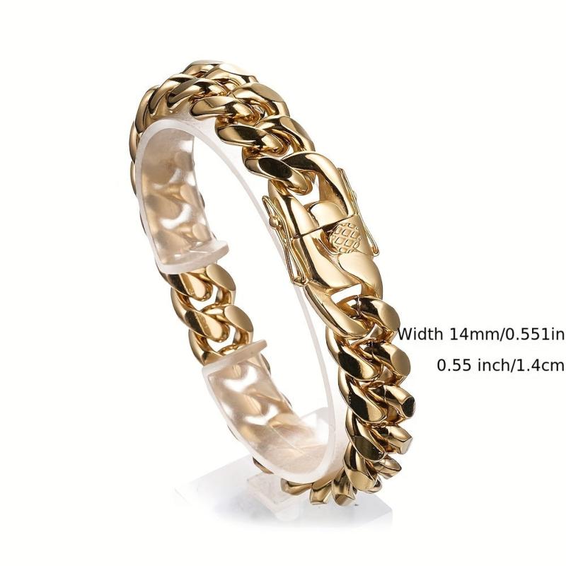 This 14mm wide Cuban chain necklace features a polished finish, making it a stylish piece of unisex hip hop jewelry. Crafted from 304L stainless steel, this necklace is non-magnetic and suitable for both men and women.