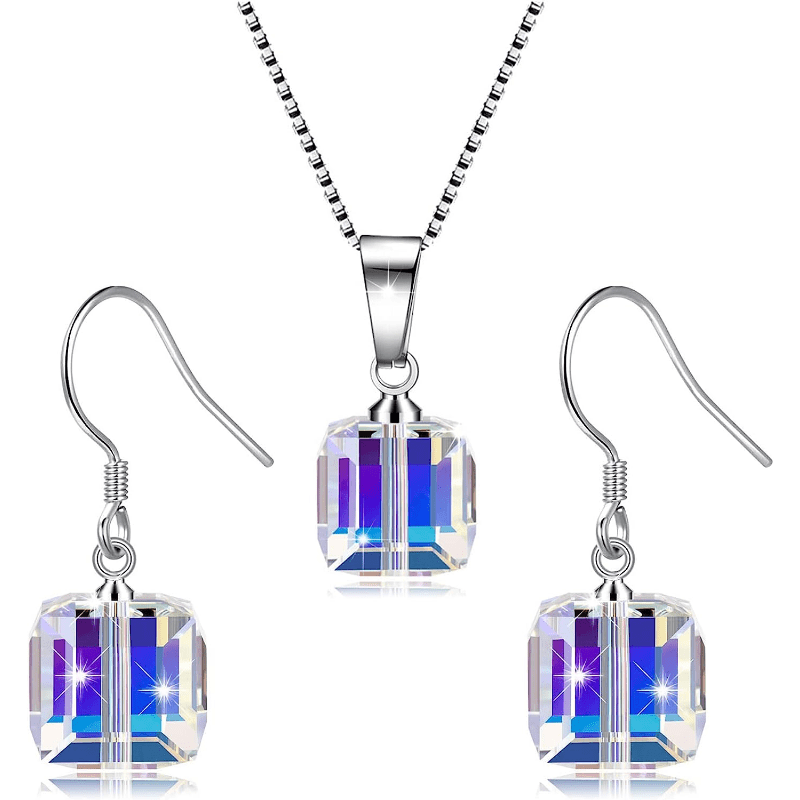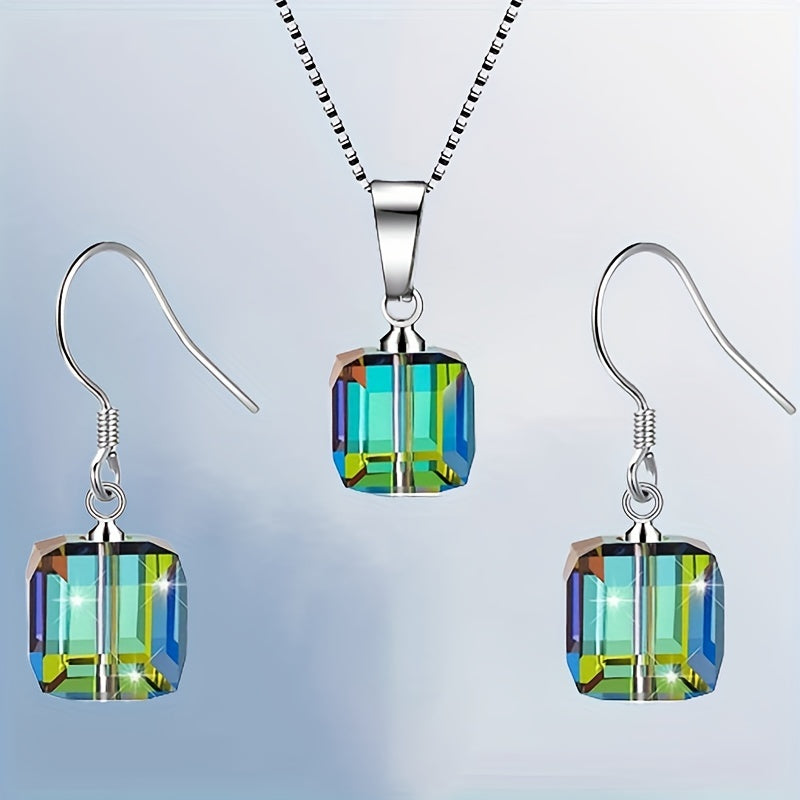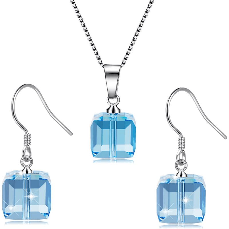 Complete your outfit with this stunning jewelry set, featuring cube-shaped zircon inlays. Perfect for daily wear or to add some sparkle to your party look.