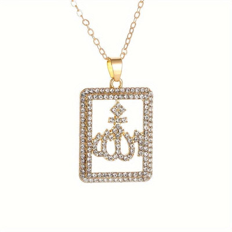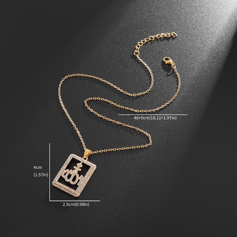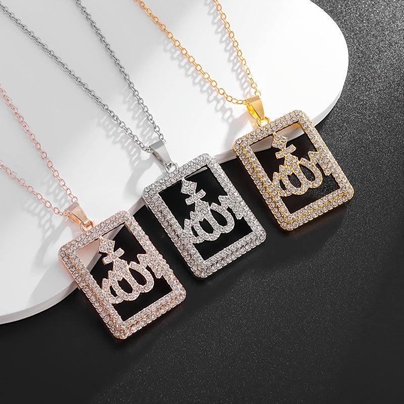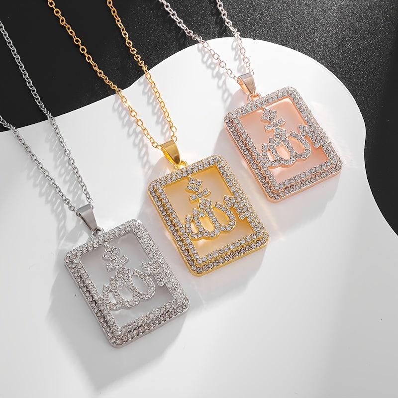 This stylish pendant necklace features a cubic zirconia Allah charm with Arabic calligraphy. Perfect for men and women.