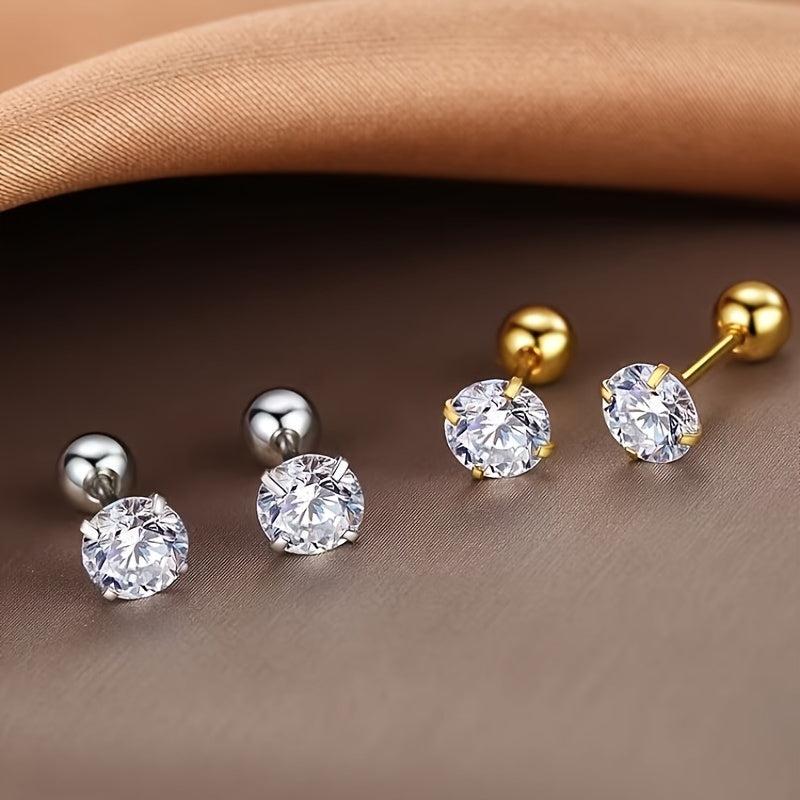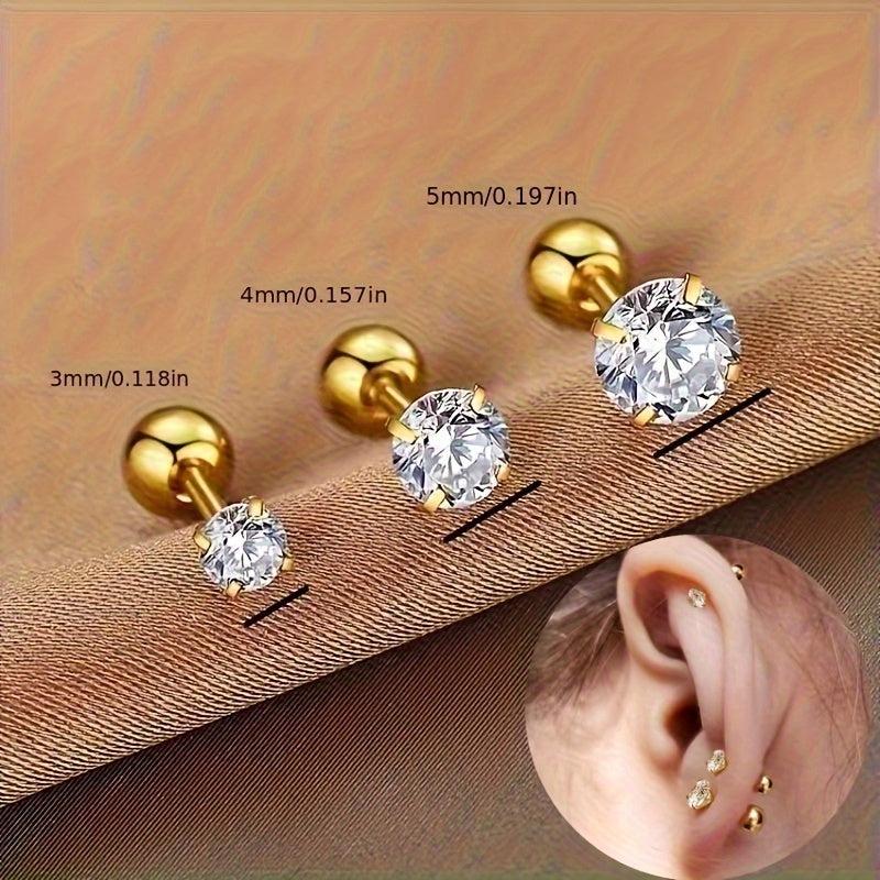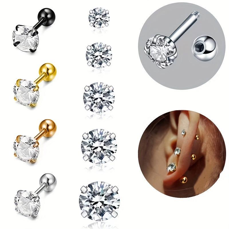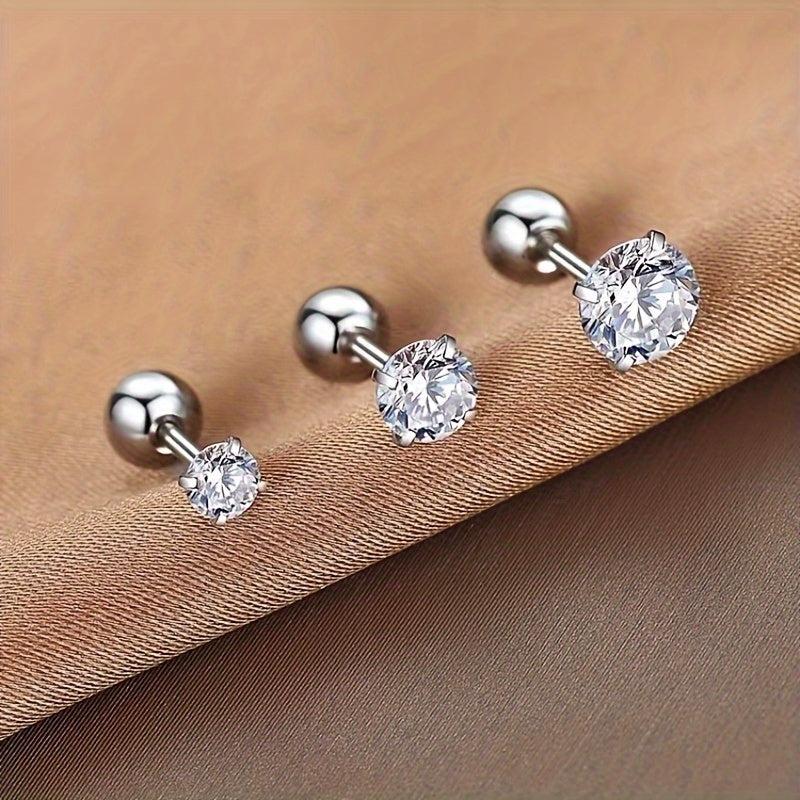 These stylish cubic zirconia stud earrings are specially designed for men to enhance their style. The threaded ear bone studs offer a unique and trendy look.