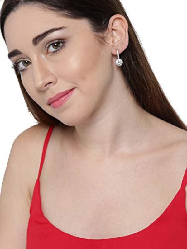 Add a touch of glamour to your look with these stunning cubic zirconia studded Bali earrings. Perfect for any occasion, these earrings sparkle and shine effortlessly.